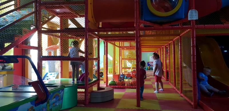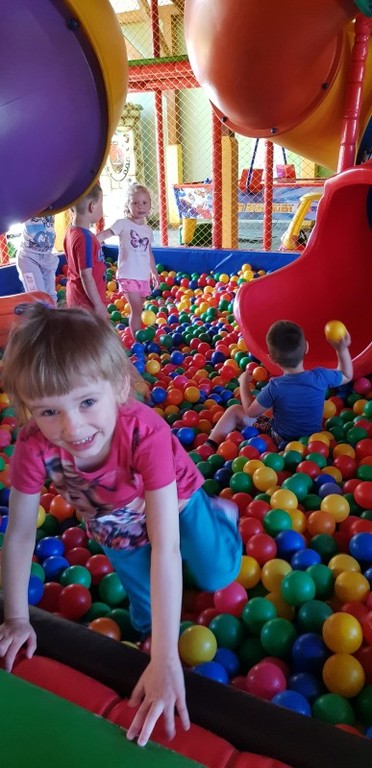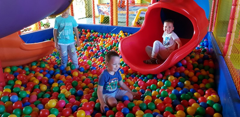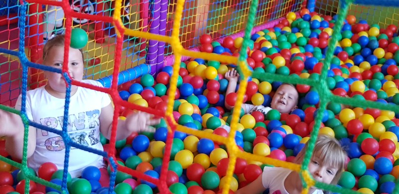 Niezwykłą niespodzianką okazała się ogromna budowla składająca się z labiryntu rur, przejść i basenów z piłeczkami. Wysoka zjeżdżalnia znajdowała się na samym szczycie konstrukcji i nie brakowało dzielnych i odważnych, aby ją pokonać. Dzieci z wielką chęcią znajdowały sobie zajęcie korzystając, także z mini pojazdów, dmuchanych skakańców, armatek na piłeczki, elektronicznych samochodów, koników oraz maczug i automatów. Po długiej zabawie był też czas na odpoczynek i uzupełnienie utraconych sił i energii oraz zaspokojenie pragnienia – na koniec zabawy dzieci otrzymały ciepły obiad i kompocik.