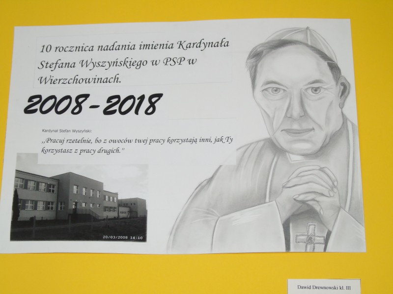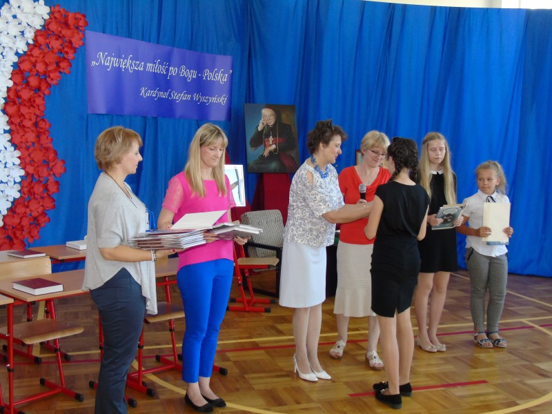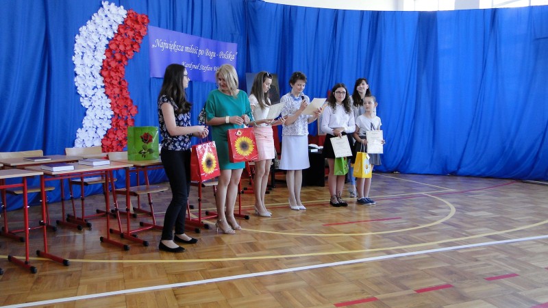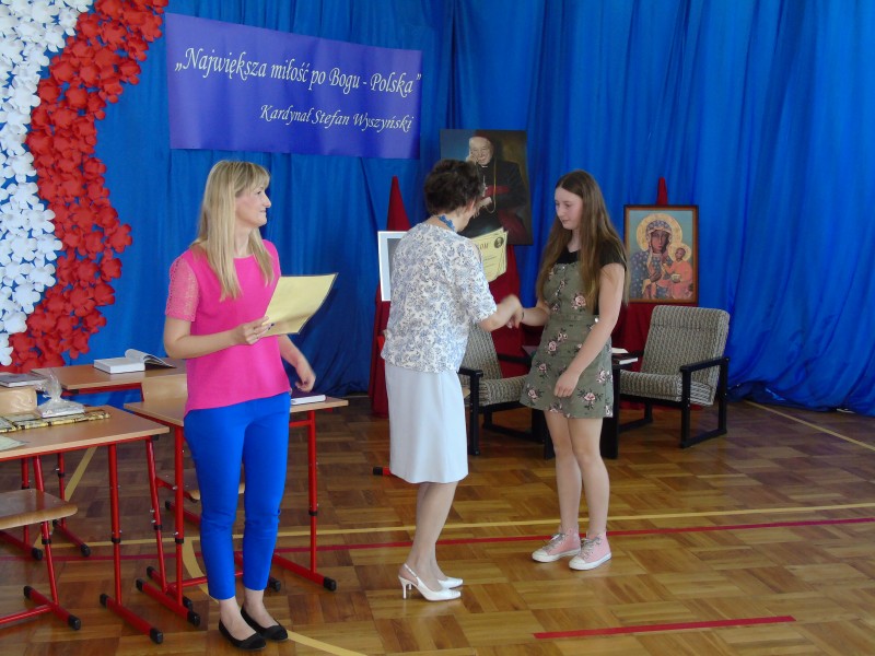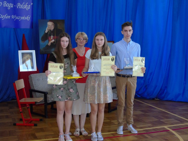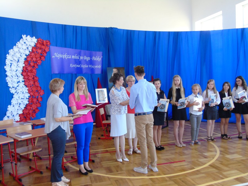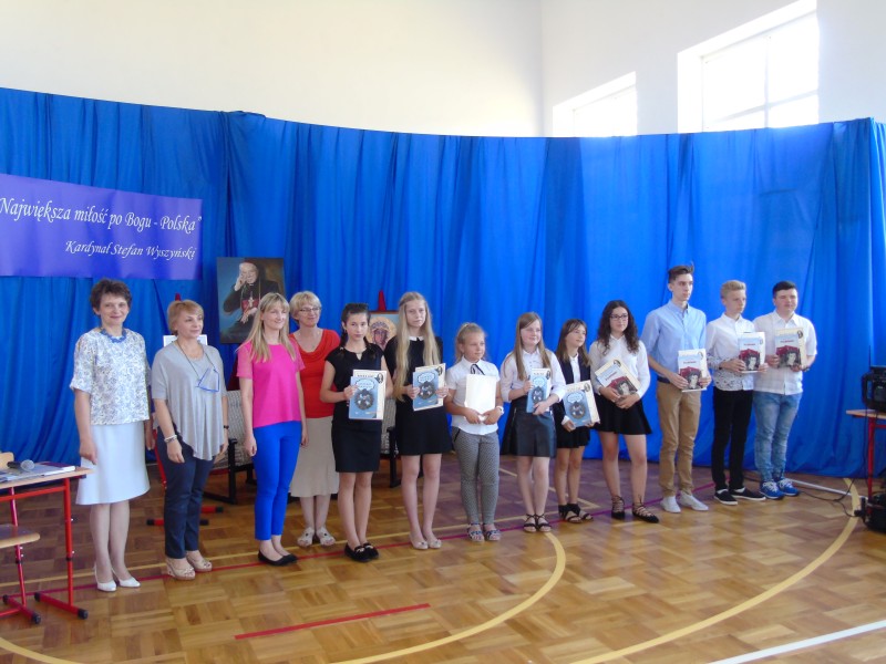 Uczniowie z niecierpliwością czekali na ostatni dzień maja, kiedy to w naszej szkole odbyła się uroczystość podsumowania konkursów przeprowadzonych z okazji 10. Rocznicy Nadania Szkole Imienia Kardynała Stefana Wyszyńskiego. W tym dniu miło nam było gościć laureatów konkursów gminnych, którzy przybyli z opiekunami. Pani Dyrektor Dorota Dobosz wręczyła dyplomy zwycięzcom oraz podziękowania nauczycielom, gratulując osiągniętych wyników i życząc sukcesów.