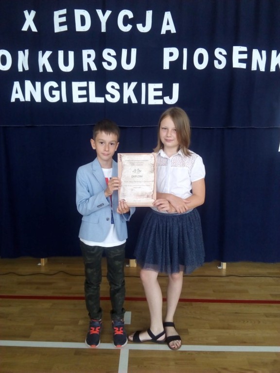 Dnia 12 czerwca 2018 r. uczniowie klasy IV, Amelia Dyziak oraz Cezary Cielniak, wzięli udział w konkursie piosenki w języku angielskim w Jedlińsku. Jako najmłodsi uczestnicy wyśpiewali III miejsce w kategorii zespół! Duet zaprezentował utwór Shawn’a Mendes’a – „Believe”.
