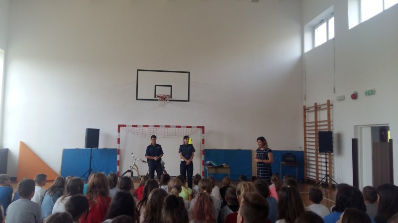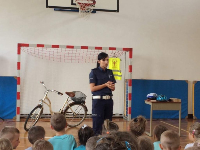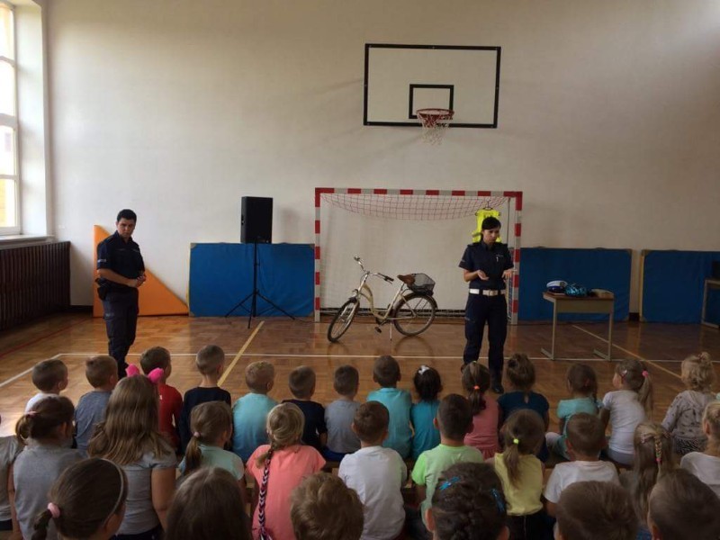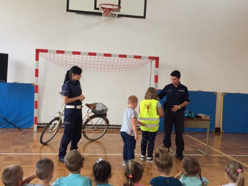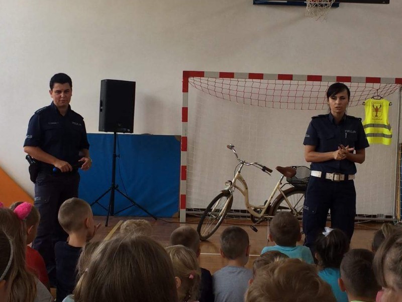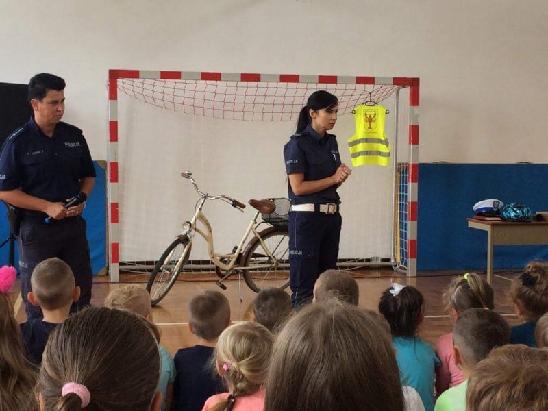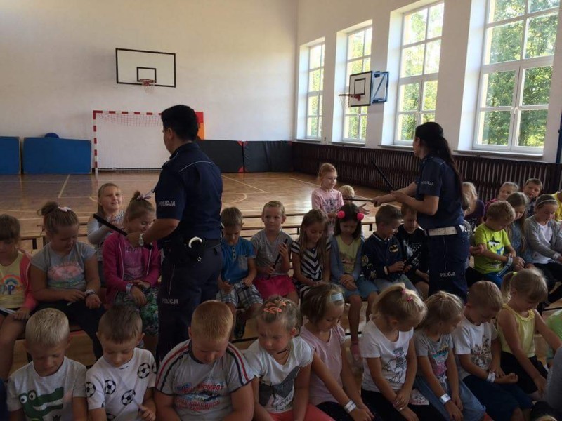 W ramach akcji „Bezpieczna droga do szkoły” w naszej szkole 7 września 2018r. pojawiły się przedstawicielki Policji. Funkcjonariuszki: Dzielnicowy Komisariatu Policji w Jedlińsku – sierż. sztab. Edyta Zaczkowska i st. sierż. Renata Gawryś z Wydziału Ruchu Drogowego Komendy Miejskiej Policji w Radomiu, przypomniały dzieciom i młodzieży zasady bezpiecznego poruszania się na drodze. Poza omówieniem najważniejszych przepisów udzieliły dzieciom kilka porad praktycznych. Wszyscy uważnie słuchali prelekcji. Bardzo ważnym czynnikiem, zwiększającym bezpieczeństwo w ruchu drogowym, jest noszenie elementów odblaskowych. Dlatego dzieci otrzymały również samozaciskowe opaski odblaskowe, które sprawią, że będą widoczne na drodze, co podkreślały funkcjonariuszki. Kształtowanie u dzieci właściwych nawyków to żmudna praca, ale opłaca się ją wykonać, bo nawyki te zostają na całe życie.