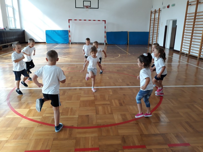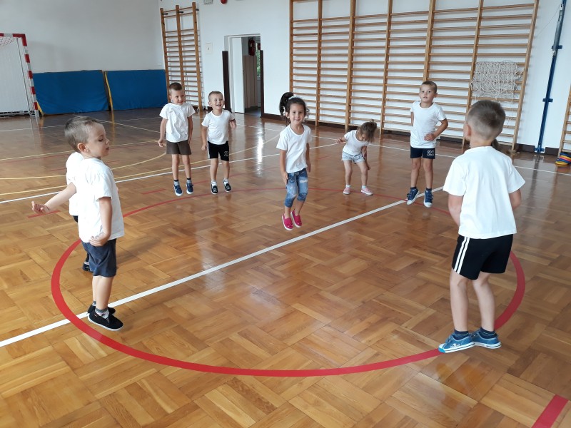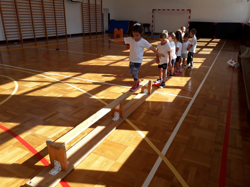Głównym celem zmagań sportowych było kształtowanie prawidłowej postawy ciała i rozwijanie sprawności ruchowej. Przedszkolaki dzielnie wykonywały poszczególne zadania ruchowe. Było wiele radości i zabawy. Wszyscy zasłużyli na duże brawa i słodki upominek.