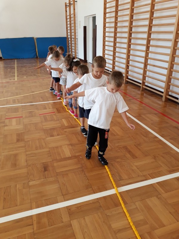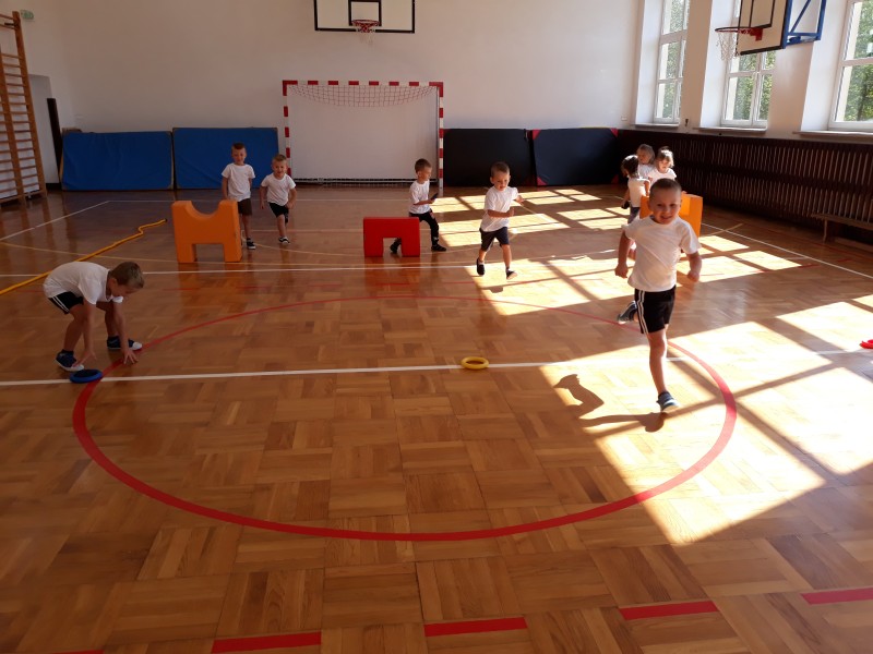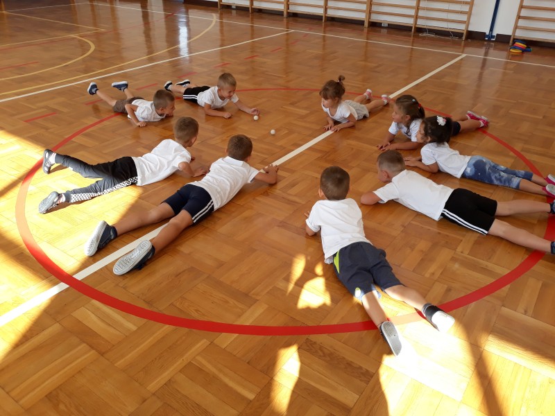 Dnia 25 września dzieci z oddziału przedszkolnego uczęszczające na zajęcia w ramach innowacji pedagogicznej pt.” Profilaktyka wad postawy u dzieci w wieku przedszkolnym i wczesnoszkolnym poprzez zabawę, ćwiczenia korekcyjne i aktywność ruchową” brały udział w turnieju gier i zabaw ruchowych z elementami gimnastyki korekcyjnej.