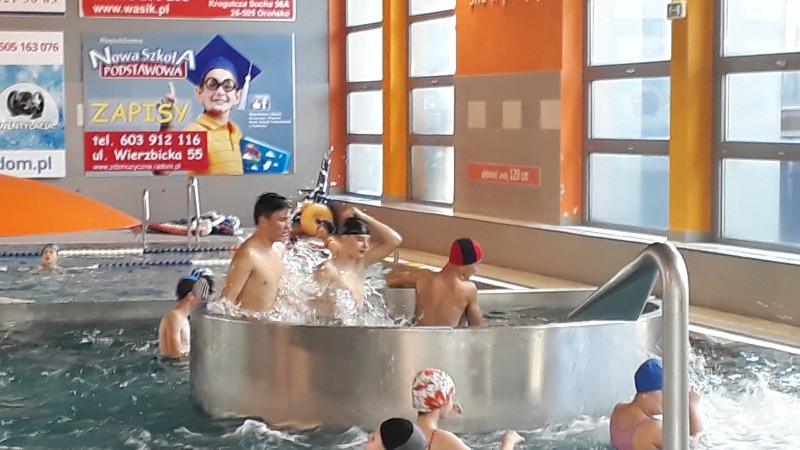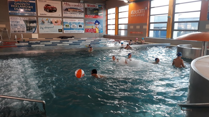 W dniu 19 i 21 października 2018 r. łącznie 60 - osobowa grupa uczniów naszej szkoły wyjechała na basen „Neptun” do Radomia. Podstawowym celem wyjazdu było kształtowanie nawyków prozdrowotnych. Pod czujnym okiem opiekunów wycieczki: Pawła Kokoszy, Pauliny Lasoty, Małgorzaty Koperskiej i Patrycji Wieczorek uczniowie zażywali kąpieli w basenie, jednocześnie doskonaląc technikę pływania. Dzieci miały do dyspozycji zjeżdżalnię, brodzik, jacuzzi i basen. Na koniec wszyscy podekscytowani i zmęczeni, ale zadowoleni, wrócili autokarem do szkoły.