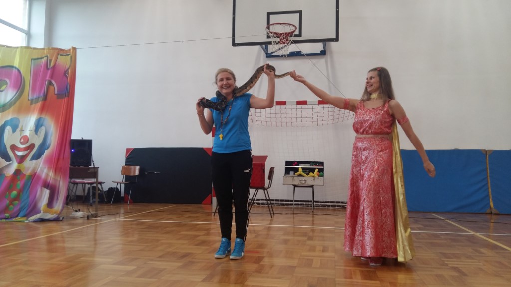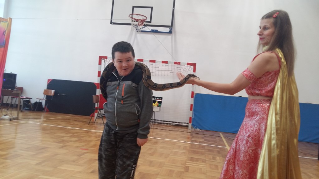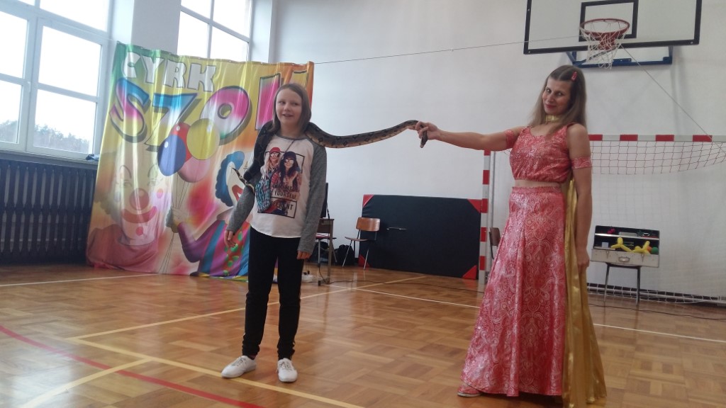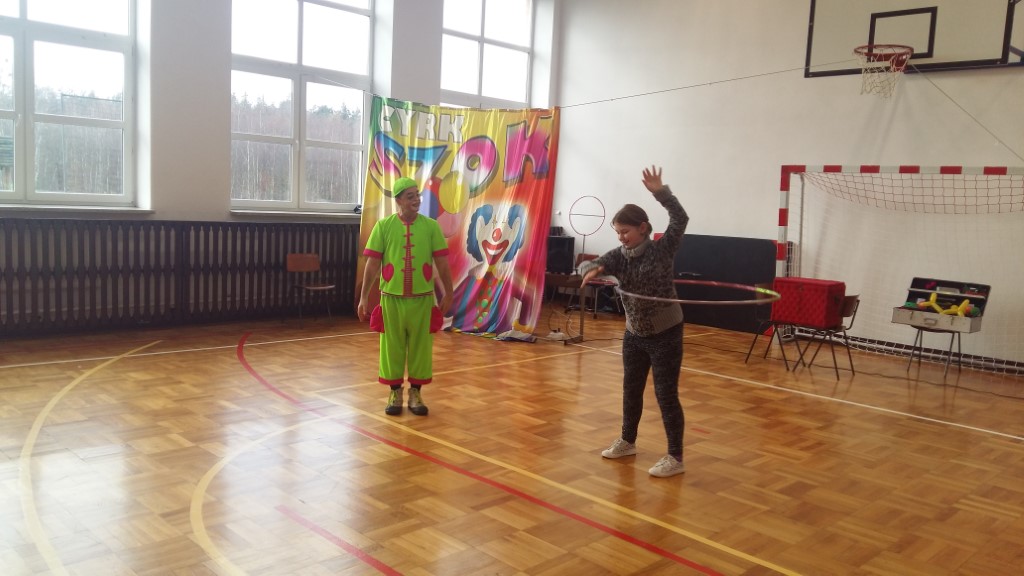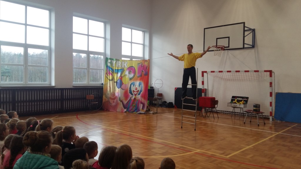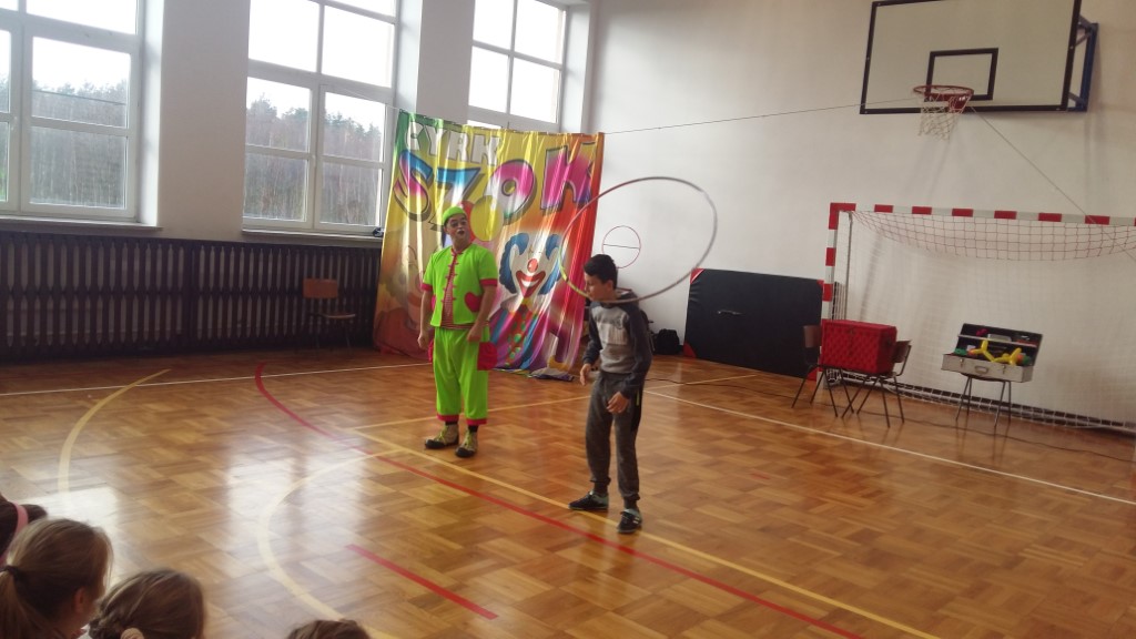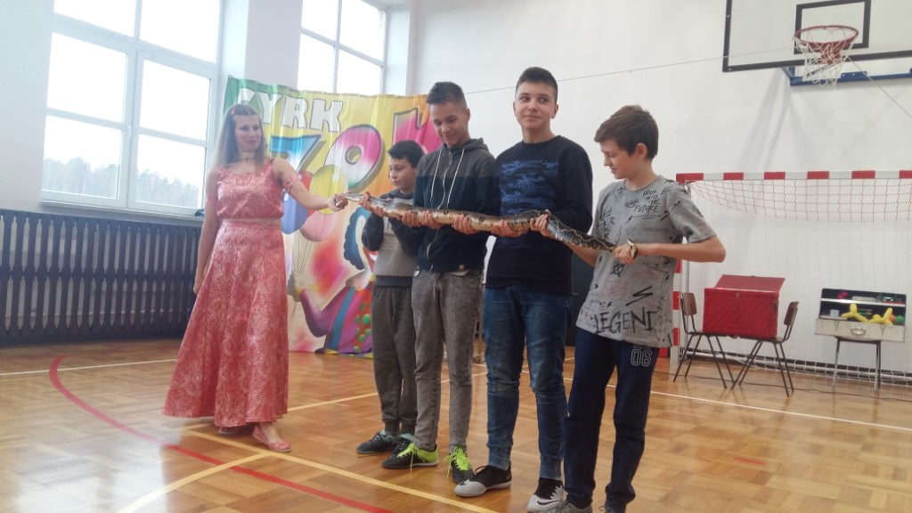 14.11.2018 r. do naszej szkoły przyjechał ukraiński cyrk „Szok”. Uczniowie, a także chętni rodzice obejrzeli ciekawy program artystyczny. Występ rozpoczął się od trudnego pokazu akrobatycznego. Wystąpił także wesoły klaun, który bawił dzieci swoimi sztuczkami. Wybrani przez artystów uczniowie nie tylko mieli okazję podziwiać triki cyrkowe, ale także brać czynny udział w realizacji wielu z nich. Pełni zapału, z różnym skutkiem, próbowali dotrzymać kroku zawodowcom, co często wzbudzało ogólną radość. Zapierającą dech w piersiach chwilą była ta, gdy artystka pojawiła się z wężem na rękach i wyszła do publiczności, aby każdy mógł go dotknąć. Niektóre dzieci wykazały się dużą odwagą głaszcząc długiego pytona. Były również pokazy żonglerki, iluzji, ekwilibrystyki.