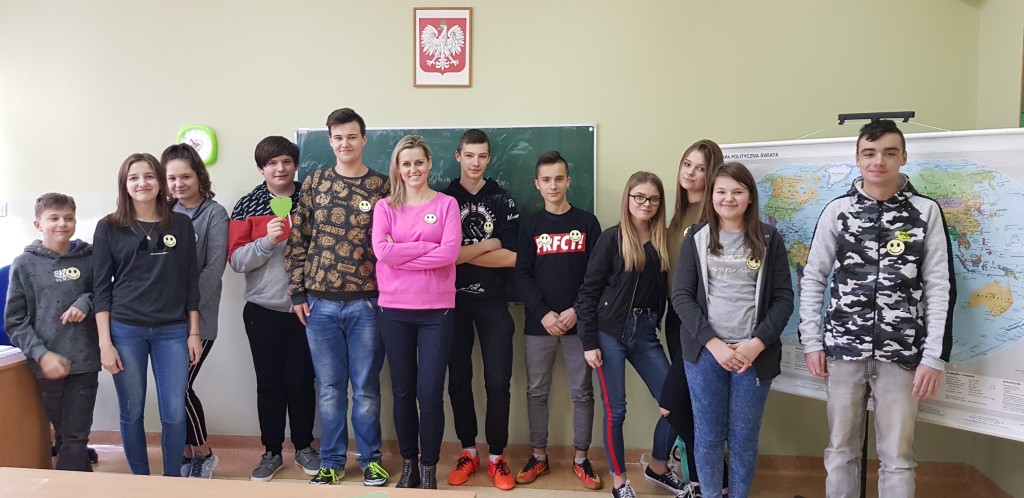 Dnia 21 listopada w naszej szkole promowaliśmy Światowy Dzień Życzliwości i Pozdrowień. Już od samego rana pani Paulina Lasota wraz z uczennicami: Magdaleną i Małgorzatą Piwowarczyk, Natalią Maj oraz Natalią Kowalską pracowały nad tym, by umilić wszystkim czas spędzony w szkole. Efektem były listki kwiatów z cytatami pełnymi życzliwych słów, kierowanymi do całej społeczności szkolnej lub wybranej osoby, które utworzyły „Bukiet Pozdrowień”. Dodatkowo każdy z uczniów, nauczycieli i pracowników szkoły otrzymał uśmiechniętą buźkę. Dzień ten stał się świetną okazją do refleksji i rozmów nt. budowania relacji międzyludzkich.
