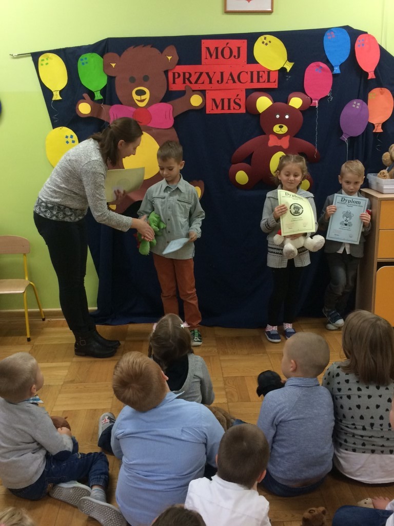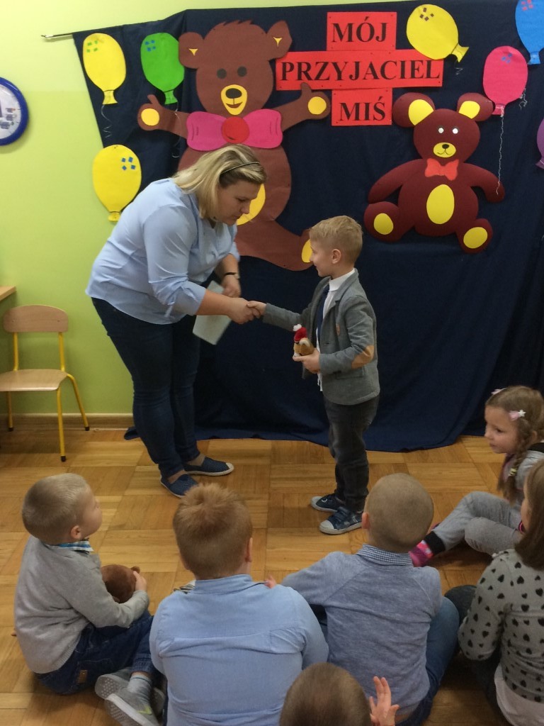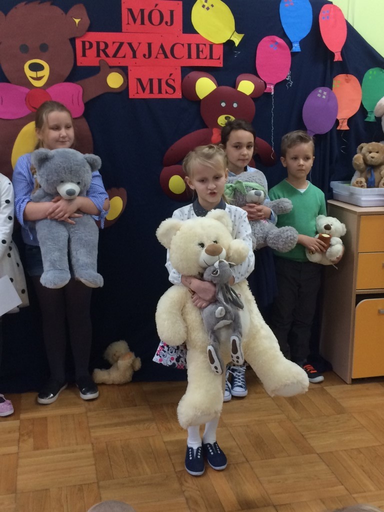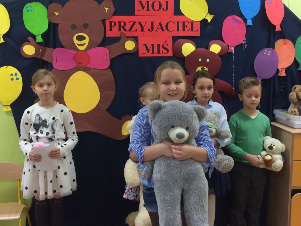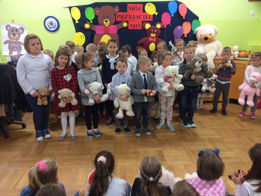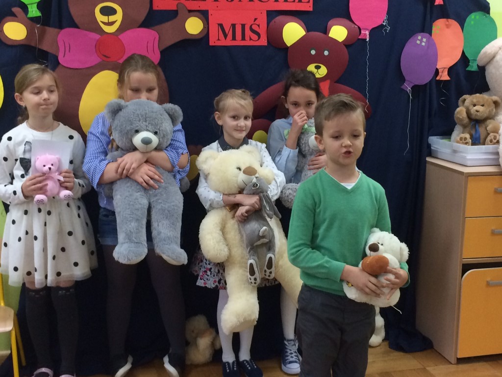 Miś jest bardzo ważny dla każdego dziecka. Można go przytulić, a nawet zwierzyć mu się z sekretów. Tego dnia dzieci przyszły do szkoły ze swoimi ulubionymi i kochanymi pluszakami. Dzieci opowiadały o swoich maskotkach, słuchały czytanych przez Panie fragmentów książek o niedźwiadkach, recytowały wiersze oraz śpiewały piosenki na urodziny Misia.