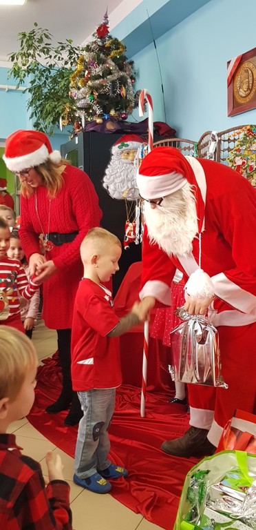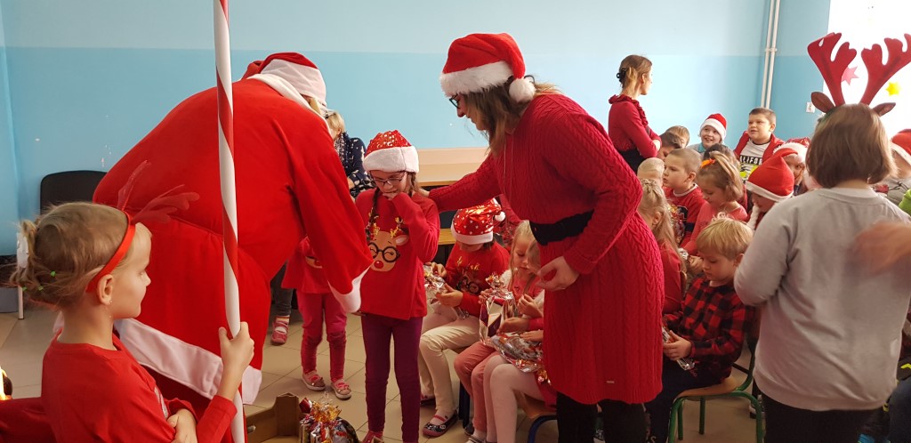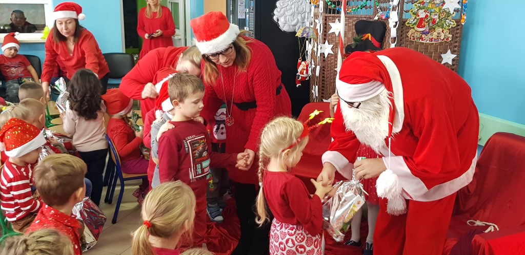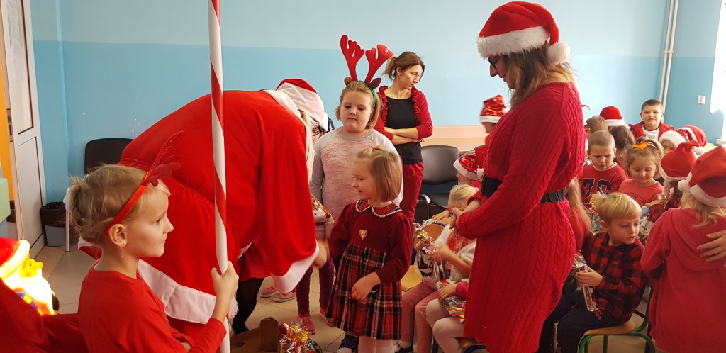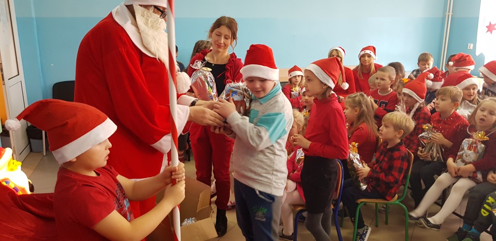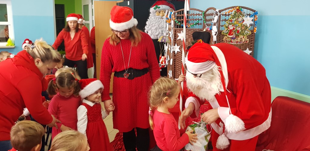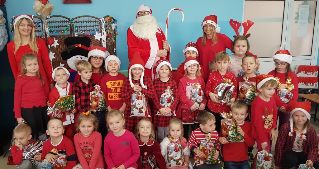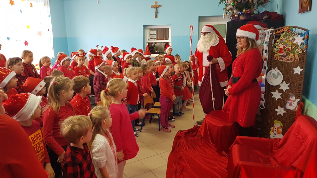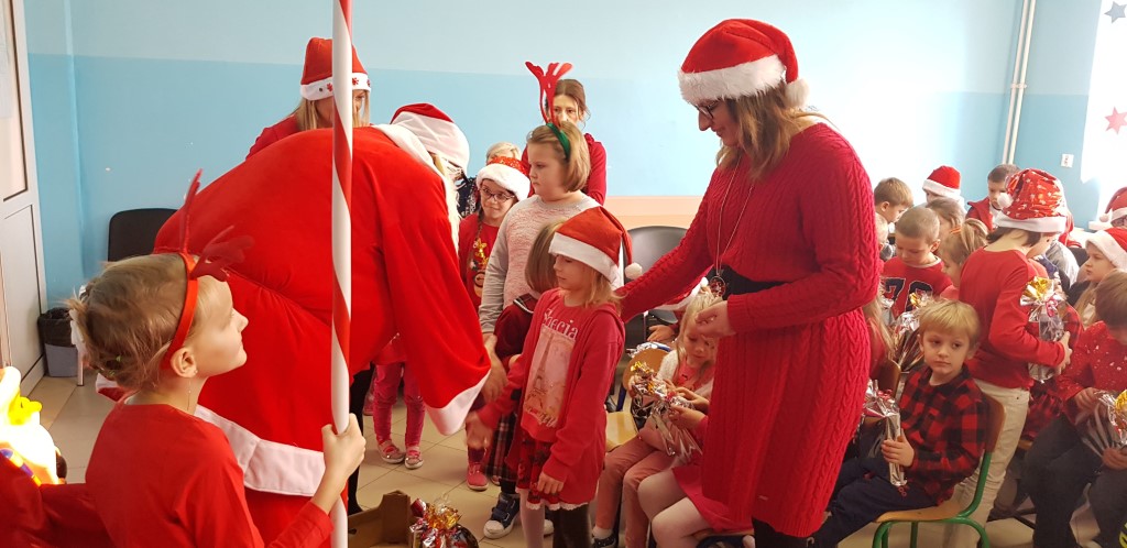 Dnia 6 grudnia dzieci z oddziałów przedszkolnych i klas 1-3 od samego rana nasłuchiwały charakterystycznego dźwięku dzwoneczka corocznego gościa, wiedziały bowiem, że i w tym roku Święty Mikołaj nie zapomni o nas z wiadomych powodów – w naszej szkole są najgrzeczniejsze dzieci na całym świecie. Świętego Mikołaja powitała Pani Dyrektor Justyna Turzyńska. Wszystkie dzieci zaśpiewały wesołe piosenki, a po wystąpieniu otrzymały wspaniałe prezenty.