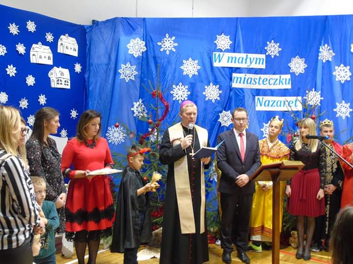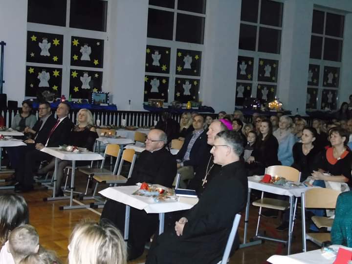 Kolejnym etapem świętowania była wspólna modlitwa, życzenia świąteczne, łamanie się opłatkiem oraz uroczysta wigilia dla gości, nauczycieli, pracowników szkoły, członków Stowarzyszenia oraz rodziców. Serdeczna atmosfera przepełniona dobrem i życzliwością na długo zapadnie nam w pamięci.