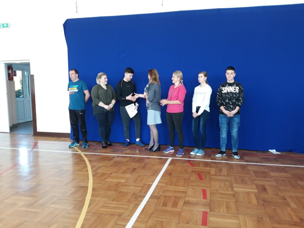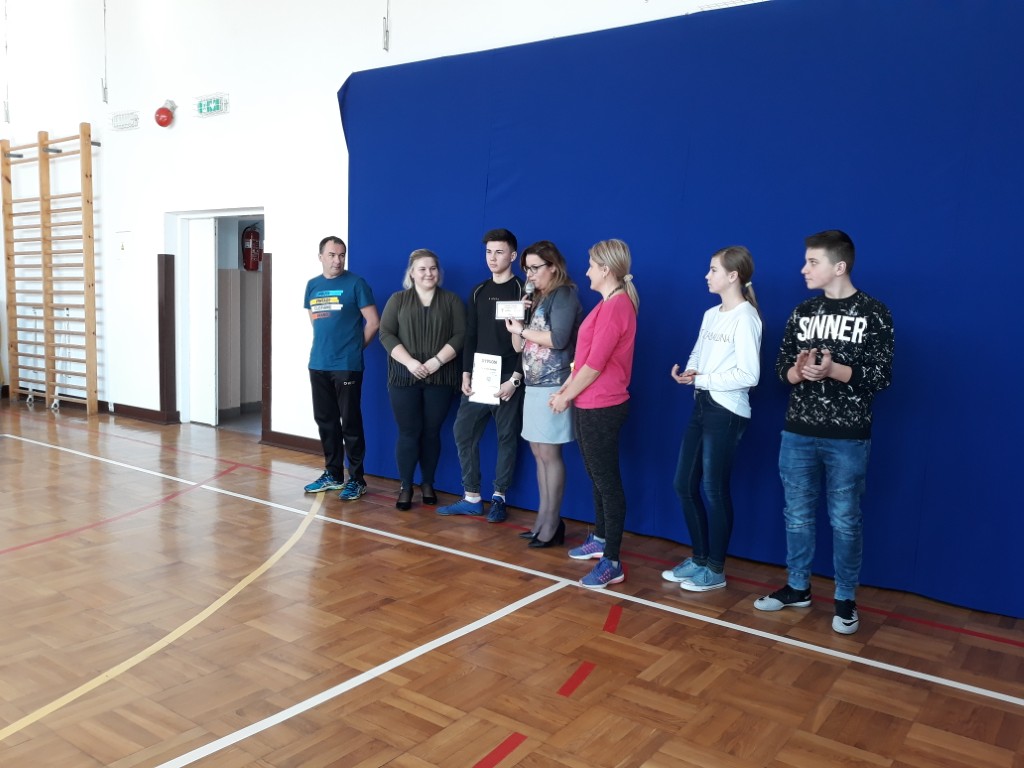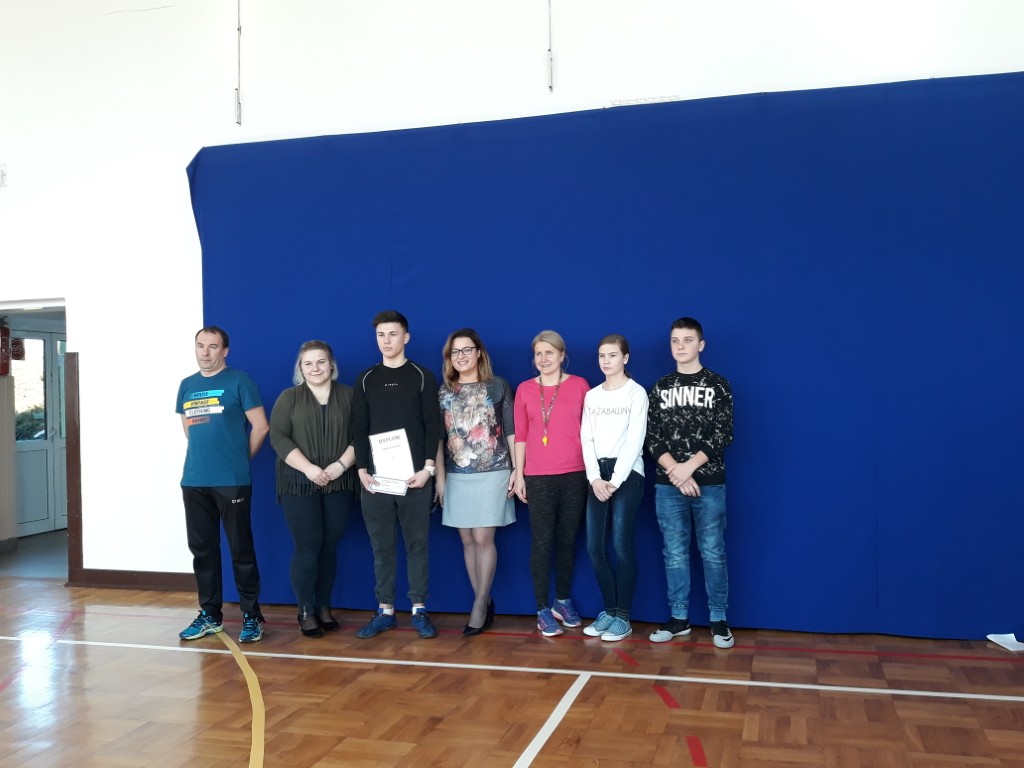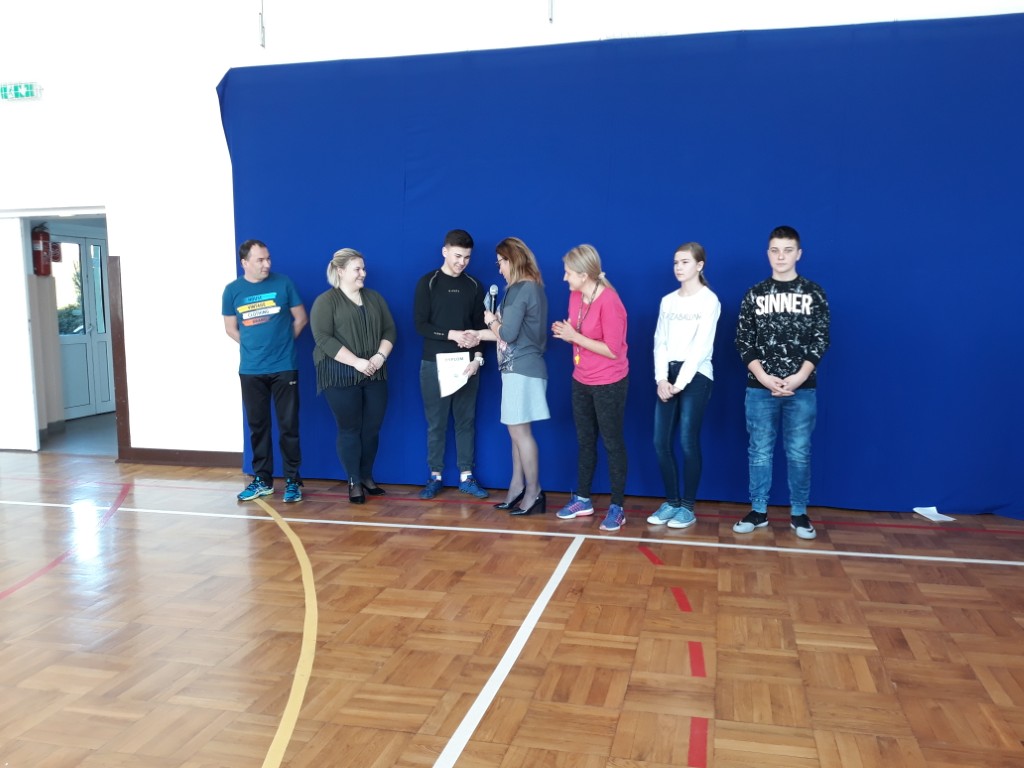 We wtorek, 19 lutego na apelu szkolnym Pani Dyrektor Justyna Turzyńska podziękowała nagrodzonym uczniom podczas III Gali Sportu Szkolnego Gminy Jedlińsk. Wręczyła również pamiątkowy dyplom i nagrodę ADRIANOWI SŁOMCE, który za liczne sukcesy sportowe w minionym roku zdobył tytuł NAJLEPSZEGO SPORTOWCA SZKOŁY.
