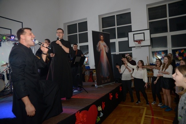 Na scenie wystąpił zespół Jak Najbardziej, który dodał energii słuchającym. Energetyzującą i motywacyjną moc miały nie tylko słowa piosenek, ale też muzyka. Młodzież licealna z Radomia z absolwentką PSP w Wierzchowinach- Moniką Bolek zaprezentowała muzyczne przeboje filmowe. Wisienką na torcie był uroczy występ najmłodszych artystów z naszej szkoły. Pokaz zumby zaprezentowała Sylwia Socha Fitness &JUMPit. Kapela Tomasza Stachury z Ewą Ziętek zakończyła koncert skocznymi oberkami i marszem na pożegnanie.