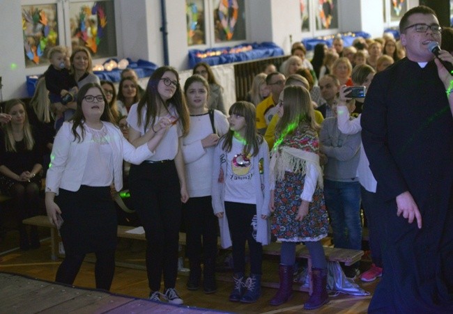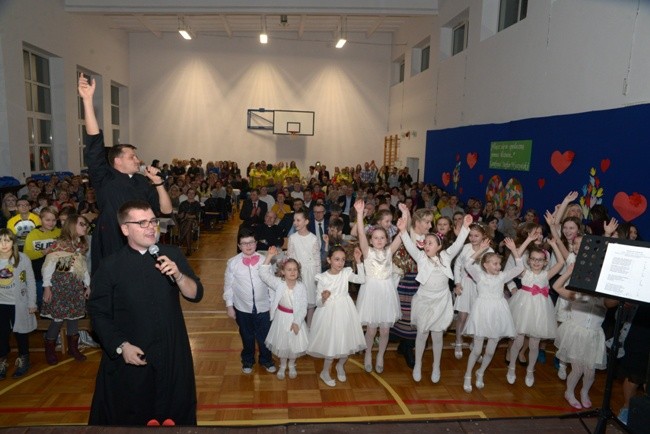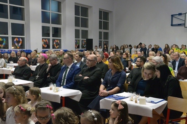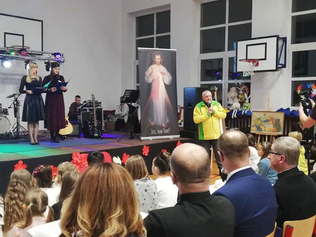 Na początku uczniowie zaśpiewali hymn szkoły. Następnie Pani Dyrektor Justyna Turzyńska skierowała dozę ciepłych słów do zebranych oraz przybliżyła cel tak ogromnej inicjatywy. Pani Wicedyrektor Ilona Kolbus i przedstawicielka Rady Rodziców Pani Katarzyna Gawin powitały wszystkich zebranych. Głos zabrali również goście: Jego Ekscelencja Ksiądz Biskup Piotr Turzyński, Pan Kamil Dziewierz – Wójt gminy Jedlińsk oraz Ksiądz Marek Kujawski, który opowiedział o działalności Hospicjum Królowej Apostołów. Imprezę poprowadziła Pani Ewelina Górska oraz Pani Patrycja Wieczorek.