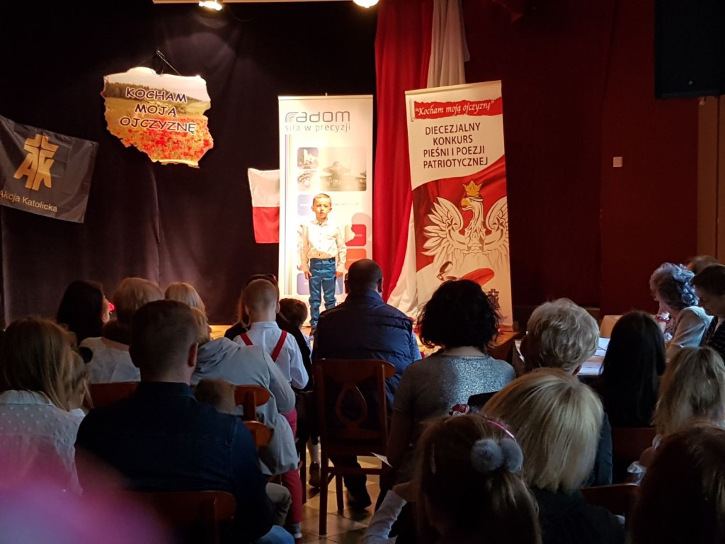 W piątek 8 marca 2019 roku nasi uczniowie reprezentowali szkołę w XVI Konkursie Pieśni i Poezji Patriotycznej ,,Kocham moją Ojczyznę”, organizowanym przez Diecezję Radomską. Konkurs odbył się w Młodzieżowym Domu Kultury w Radomiu.