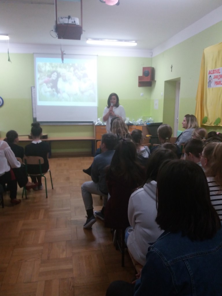 Nasza szkoła już szósty raz była organizatorem gminnego konkursu przyrodniczego z elementami profilaktyki przeciwalkoholowej. W tym roku uczniowie pisząc test finałowy musieli wykazać się wiadomościami z zakresu funkcjonowania ekosystemu leśnego oraz wpływu alkoholu na zdrowie człowieka. Wszystkie szkoły podstawowe naszej gminy wzięły udział w konkursie. Pierwszy etap został przeprowadzony w poszczególnych placówkach i wyłonił on po trzech kandydatów do etapu finałowego, odbywającego się w naszej szkole. Pani Dyrektor Justyna Turzyńska serdecznie powitała przybyłych finalistów wraz z ich opiekunami i życzyła powodzenia w trakcie pisania testu. Przybyli goście zostali zaproszeni na słodki poczęstunek.