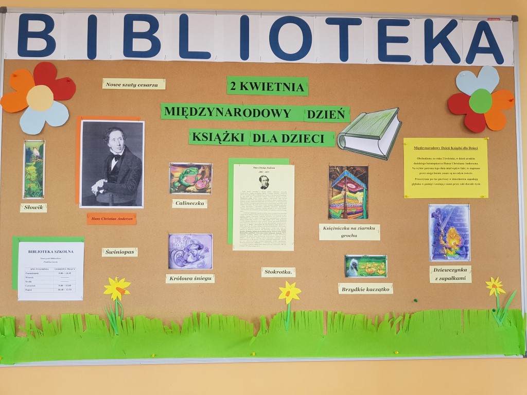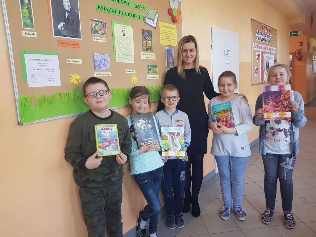W obchody zaangażowała się p. Paulina Lasota, która zachęcała wszystkie dzieci do czytelnictwa. Niektóre z nich po raz pierwszy odwiedziły szkolną bibliotekę. Zostały przeczytane najpopularniejsze bajki i baśnie H. Ch. Andersena.
