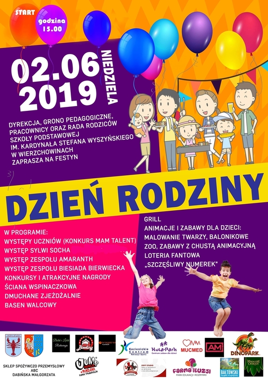 Dyrekcja, Grono Pedagogiczne, Pracownicy oraz Rada Rodziców Publicznej Szkoły Podstawowej im. Kardynała Stefana Wyszyńskiego serdecznie dziękują za okazałe serce i ufundowanie nagród na festyn Dzień Rodziny, który od będzie się 02.06.2019r.