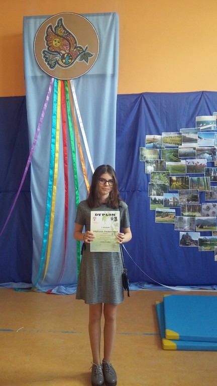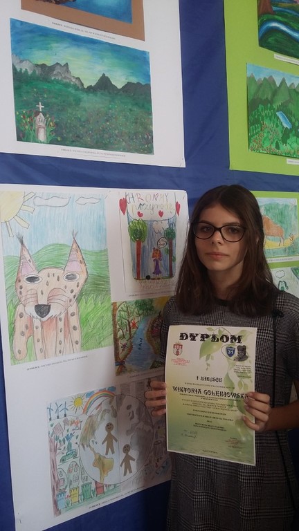 Wiktorię Gołębiowską - I miejsce, a wyróżniono Zuzannę Sadowską w kategorii klasy V- VIII (opiekun pani Małgorzata Zegarek)