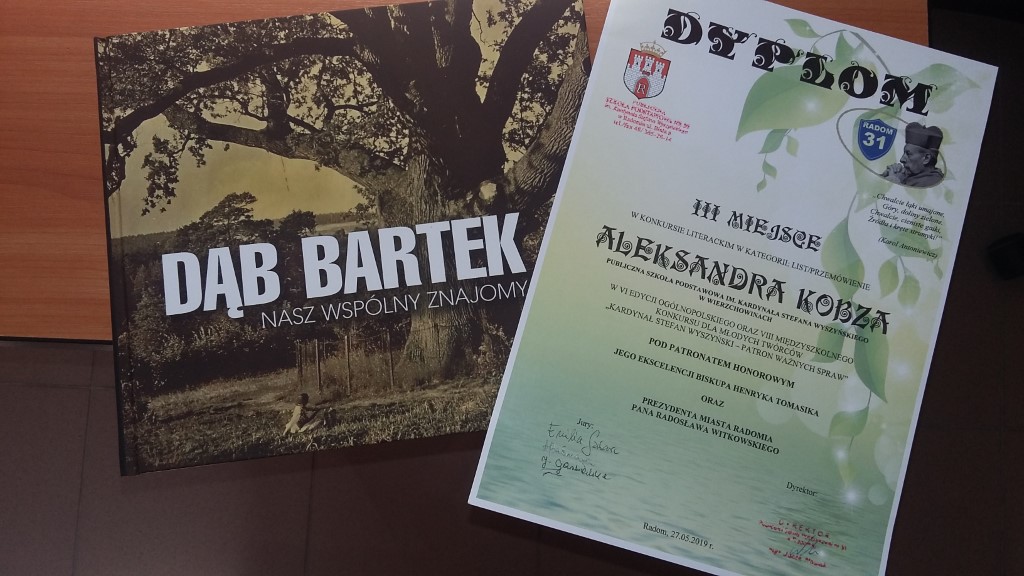 Uczniowie PSP w Wierzchowinach kolejny raz wzięli udział w konkursie zorganizowanym przez PSP nr 31 w Radomiu pod patronatem Ordynariusza Diecezji Radomskiej Biskupa Henryka Tomasika oraz Prezydenta Radomia Radosława Witkowskiego. Uczestnicy konkursu przedstawili w swoich pracach piękno otaczającego nas świata, nawiązując do hasła VI edycji: „ Chwalcie łąki umajone…” Możemy poszczycić się podwójnym sukcesem, gdyż uczennice naszej szkoły zostały laureatkami konkursu literackiego oraz plastycznego. Uczennica klasy VIII Aleksandra Kobza otrzymała III miejsce w konkursie literackim - na 86 prac !- pisząc list otwarty do rówieśników, w którym przekonywała, że warto chronić przyrodę. Do konkursu uczennicę przygotowała pani Małgorzata Zegarek.