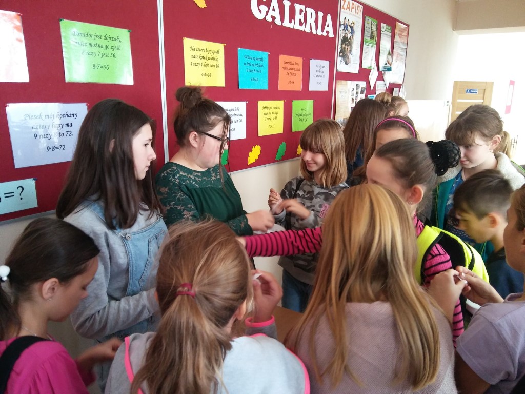 4 października obchodziliśmy w naszej szkole Światowy Dzień Tabliczki Mnożenia. Celem akcji jest propagowanie zabawowej formy nauczania matematyki. Ma ona zachęcić do przypomnienia sobie tabliczki mnożenia w przyjemny, niecodzienny sposób. Akcja jest okazją dla uczniów do nadrobienia „tabliczkowych” zaległości po wakacjach. Na długiej przerwie uczniowie mieli możliwość sprawdzenia swoich umiejętności przy stolikach. Chętni mogli spróbować swoich sił w tabliczce mnożenia po angielsku. Za podanie poprawnego wyniku mnożenia uczniowie otrzymywali cukierka. Zabawa cieszyła się dużym powodzeniem.