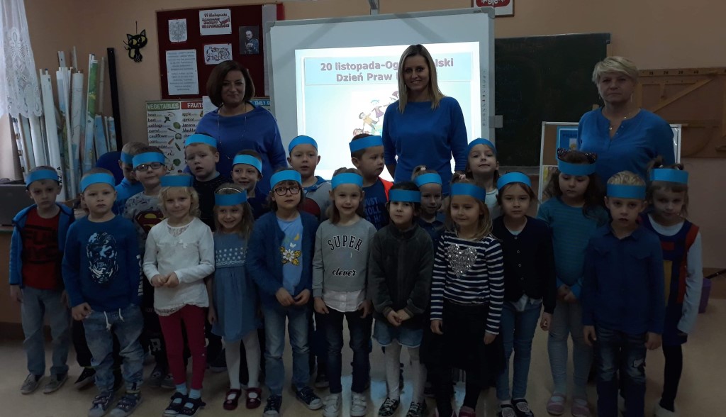 W obchody Międzynarodowego Dnia Praw Dziecka włączyły się także placówki edukacyjne w Polsce, wśród nich nasza szkoła. Inicjatorkami podjętych działań tego dnia były p. dyrektor Justyna Turzyńska i p. Paulina Lasota – pedagog szkolny, która we współpracy z uczniami oraz nauczycielami przeprowadziła małą kampanię społeczną. Cała społeczność szkolna ubrała się na niebiesko – kolor UNICEF, uczniowie wysłuchali i obejrzeli prezentacje oraz zaprezentowali przygotowane przez siebie projekty nt. praw dziecka. Ponadto mogli sprawdzić swoją wiedzę nt. znajomości praw dziecka rozwiązując quizy. W spotkaniu uczestniczył również przedstawiciel komisariatu Policji w Jedlińsku – dzielnicowy mł. asp. Paweł Wójcik. Dzieciom, oprócz praw, zostały przypomniane także ich obowiązki. Na koniec spotkania wręczono nagrody dla laureatów konkursu zorganizowanego przez Samorząd Uczniowski pn. „Znam swoje prawa i obowiązki”.
