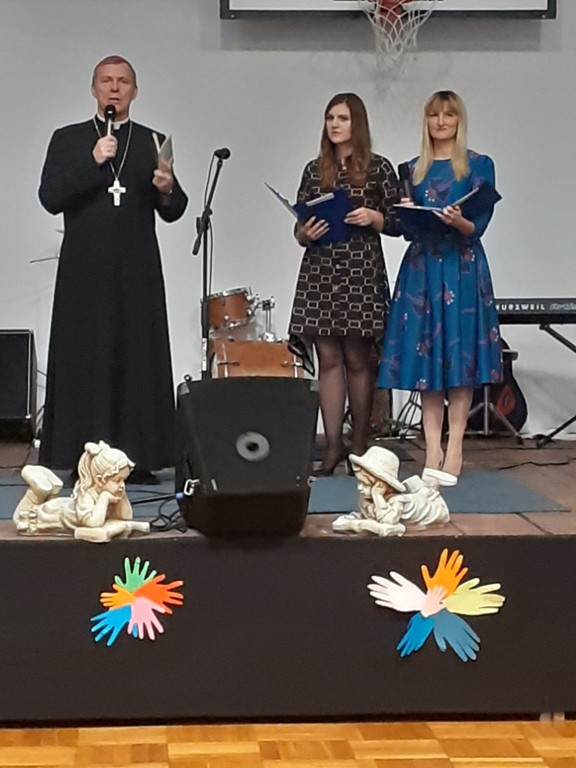 Na początku uroczystości uczniowie zaśpiewali hymn szkoły. Następnie Pani Dyrektor Justyna Turzyńska powitała wszystkich zebranych. Głos zabrali również goście: Jego Ekscelencja Ksiądz Biskup Piotr Turzyński, Pan Kamil Dziewierz – Wójt gminy Jedlińsk oraz Ksiądz Robert Kowalski, który opowiedział o działalności Caritas Diecezji Radomskiej. Imprezę poprowadziły panie: Ewelina Górska oraz Patrycja Wieczorek.