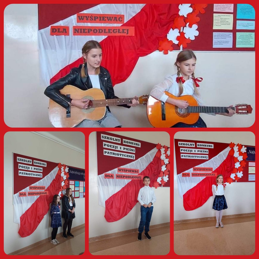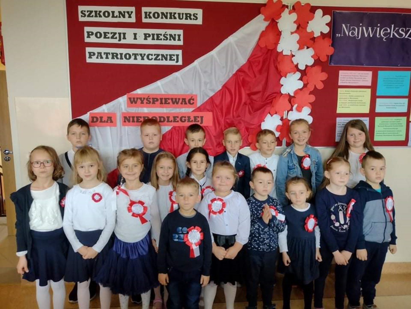 4 listopada br. w naszej szkole odbył się Szkolny Konkurs Pieśni i Poezji Patriotycznej „Wyśpiewać dla Niepodległej”. Jego celem było rozwijanie uzdolnień twórczych i talentów wokalnych, doskonalenie umiejętności recytatorskich, rozbudzanie wrażliwości na piękno poezji oraz upowszechnianie kultury żywego słowa wśród dzieci. Słowne i wyśpiewane laurki to najlepszy podarunek dla naszej Ojczyzny, a postawa uważnego słuchacza, zaprezentowana przez widzów, to przejaw współczesnego patriotyzmu. Wszystkim uczestnikom serdecznie dziękujemy i gratulujemy.