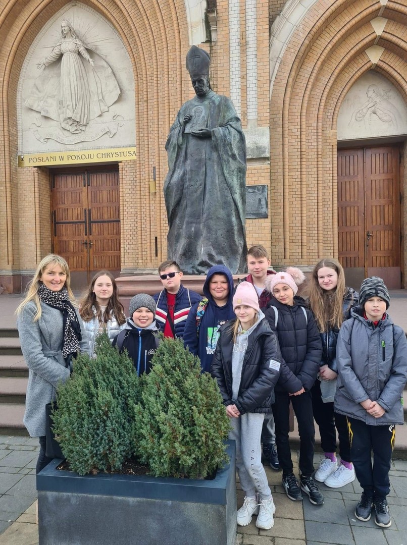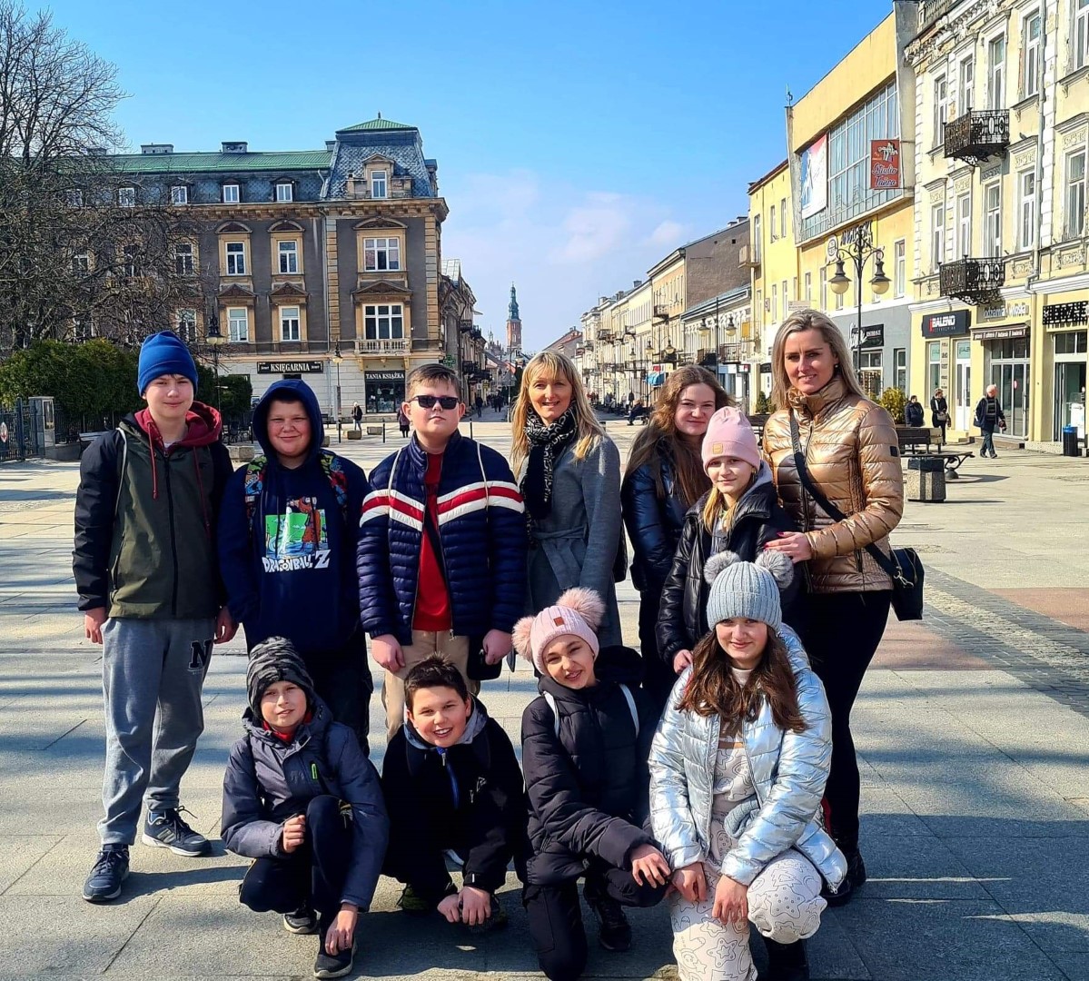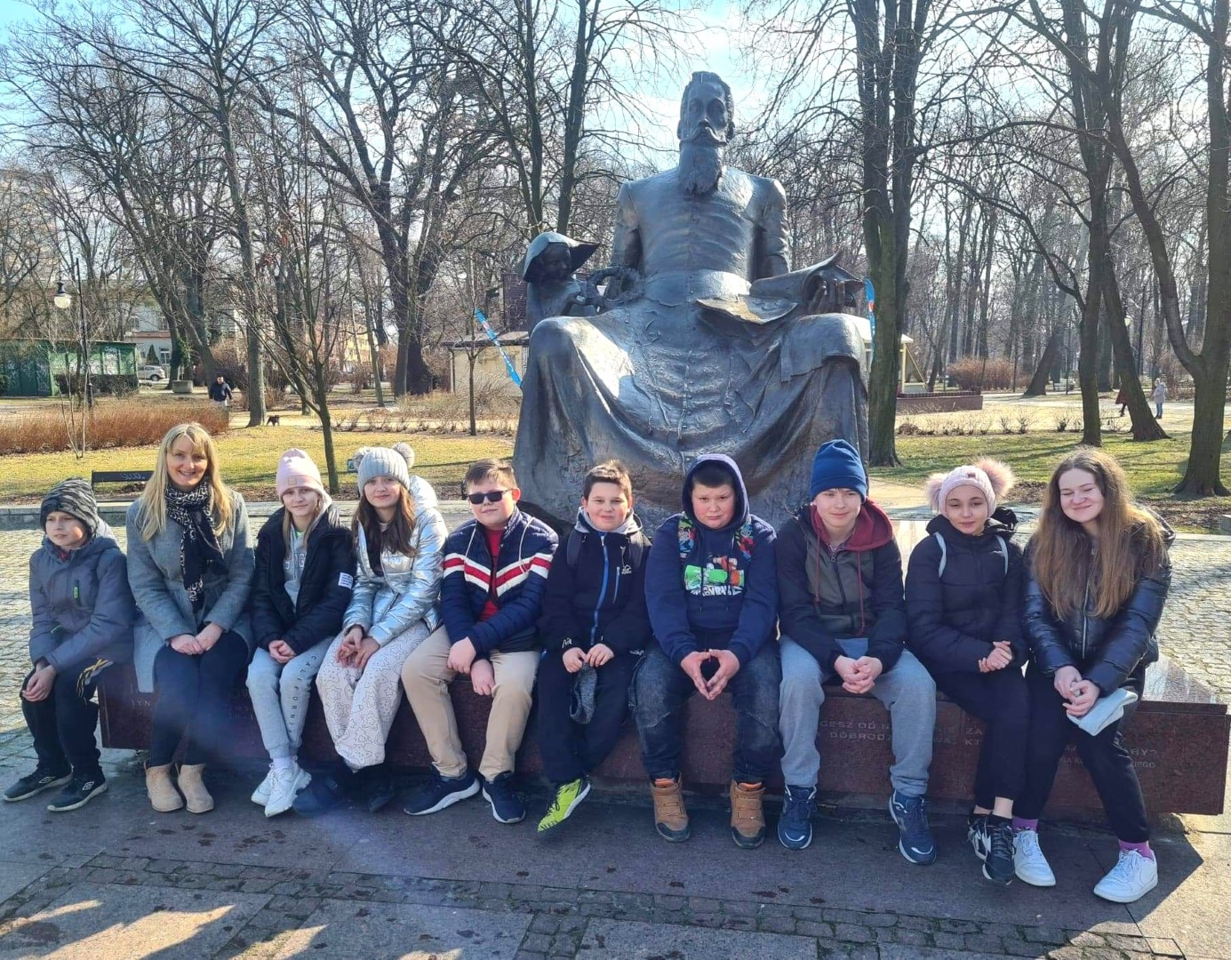 We wtorek 15 marca uczniowie klasy 5, z opiekunkami, wyjechali do Radomia. Pierwszy punkt wycieczki był w Krainie Marzeń, gdzie spędzili dwie godziny na komfortowej i bezpiecznej zabawie. Następnie wszyscy ruszyli zwiedzić Radom „Śladami Wandy Malczewskiej” i nie tylko. Po krótkim spacerku ulicą Limanowskiego dotarli do zachowanych fragmentów murów miejskich. Przeszli pod kościół farny: tu została ochrzczona Wanda i Jacek Malczewscy. Następnym punktem wycieczki była kamienica przy Żeromskiego 4: tam urodziła się Wanda Malczewska, a rodzina mieszkała prawdopodobnie w oficynie budynku, epitafium Stanisława Malczewskiego w kościele oo. Bernardynów oraz budynek dawnego Towarzystwa Kredytowego Ziemskiego przy ulicy Żeromskiego. Pod pomnikiem Jacka Malczewskiego przy Resursie zrobili sobie pamiątkowe zdjęcie. Spacerując ulicą Żeromskiego, dotarli do figury Witolda Gombrowicza, Leszka Kołakowskiego, Jana Kochanowskiego. Ostatnie zdjęcie zrobiono pod pomnikiem kardynała Stefana Wyszyńskiego przed radomską katedrą. Zmęczeni, ale wzbogaceni o nowe historie związane z mieszkańcami Radomia, wszyscy wrócili bezpiecznie do domu. To był wspaniały pomysł na wyjazd z okazji Dnia Kobiet wzbogacony o elementy edukacyjne.