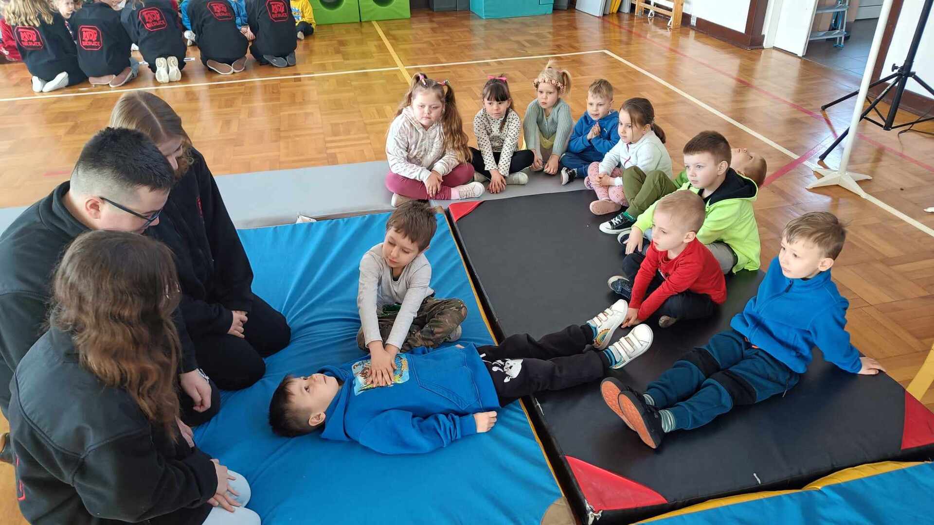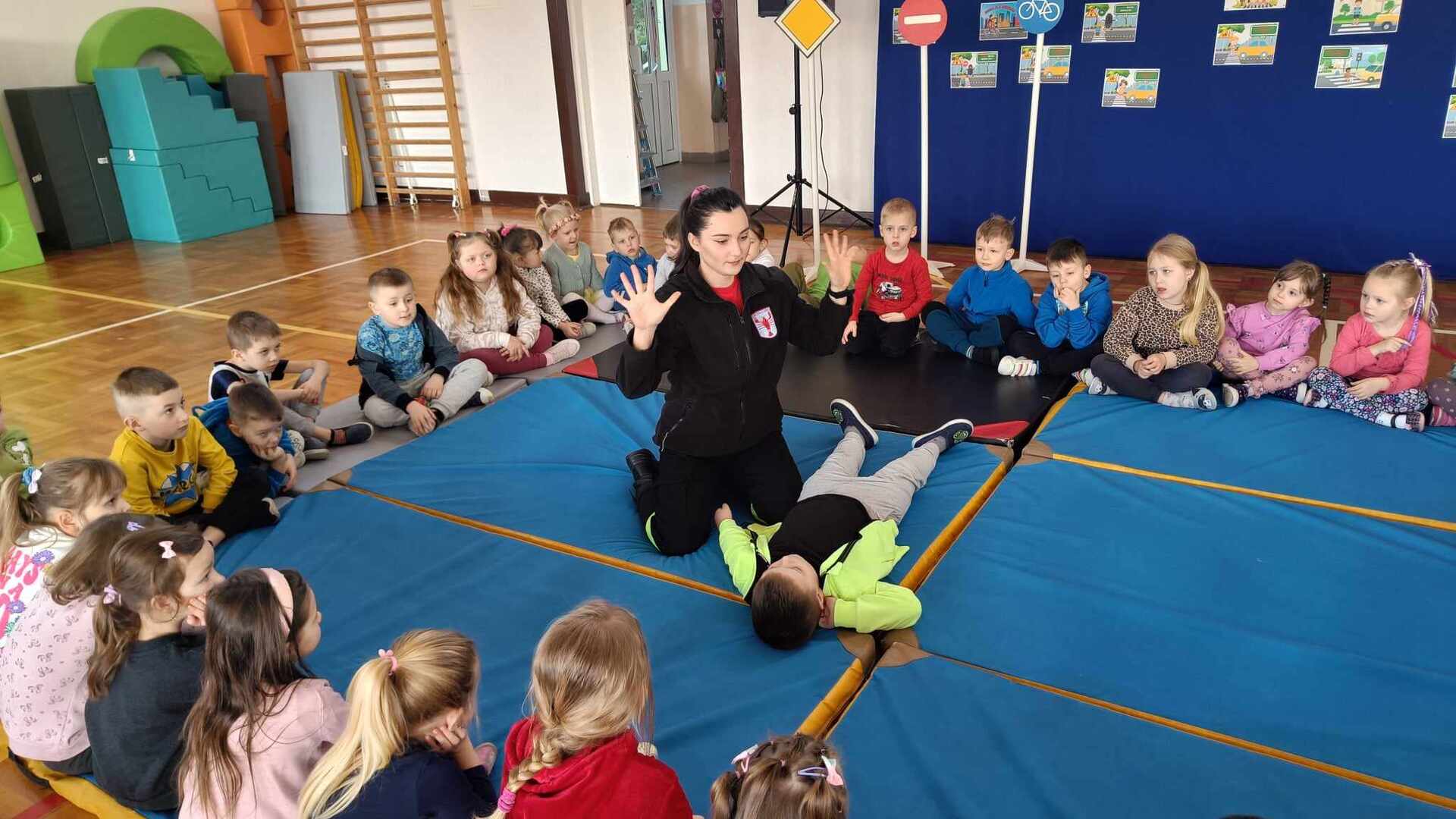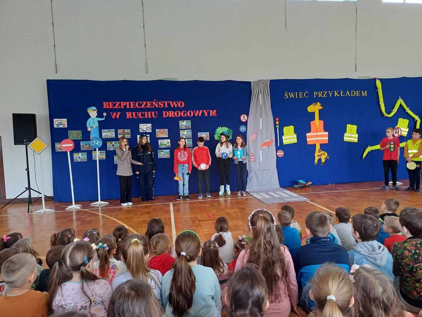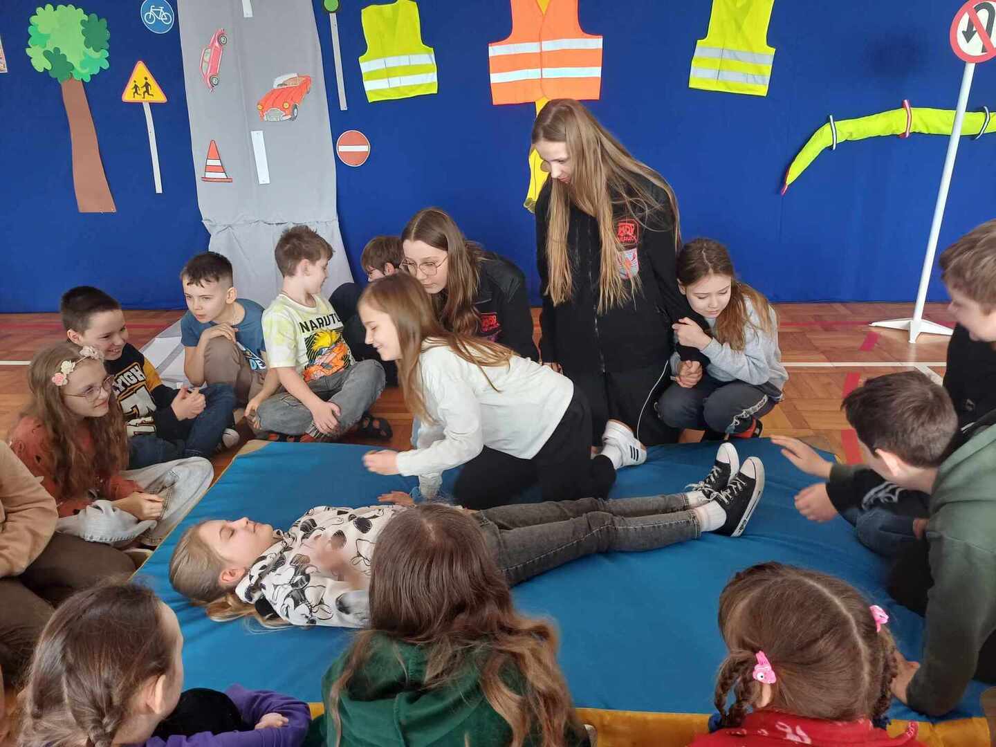 Środa 20 marca była w naszej szkole dniem zdominowanym przez Młodych Bohaterów Bezpieczeństwa. Drużyna złożona z uczniów klas: piątej, siódmej i ósmej przekazywała wiedzę dotyczącą bezpieczeństwa swoim młodszym kolegom. W pierwszej i trzeciej części naszego spotkania w sali gimnastycznej, przeprowadzone zostały warsztaty z udzielania pierwszej pomocy. Dzięki naszym uczniom, którzy są członkami Młodzieżowej Drużyny Pożarniczej, dzieci z klas młodszych dowiedziały się jak zadbać o własne bezpieczeństwo, przypomniały sobie numery alarmowe. Młodzież poinformowała, jak poprawnie złożyć zgłoszenie, jak ułożyć poszkodowanego w pozycji bezpiecznej i wykonać resuscytację krążeniowo – oddechową. W środkowej części odbyło się przedstawienie o tematyce związanej z Bezpieczeństwem w Ruchu Drogowym promujące prawidłowe zachowania na drodze. Młodzieży pomagali dorośli w składzie: Patrycja Wieczorek – reżyser, Katarzyna Tkaczyk, Olga Mosionek, Kinga Paul i Dagmara Komorowska– scenografia, Joanna Puk – przygotowanie warsztatów pierwszej pomocy. Dzięki uczestnictwu w takich spotkaniach wzrasta świadomości naszych uczniów sprzyjająca bezpieczeństwu własnemu i innych, a także zostają oni przygotowani do racjonalnych zachowań w przypadku wystąpienia zagrożeń.