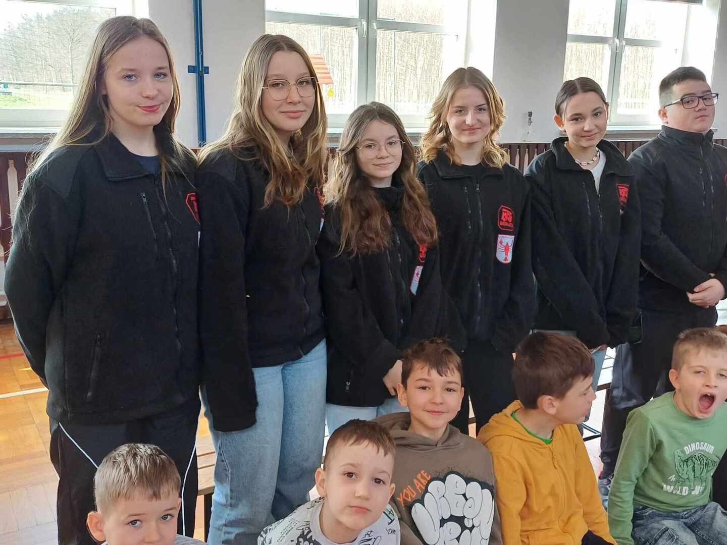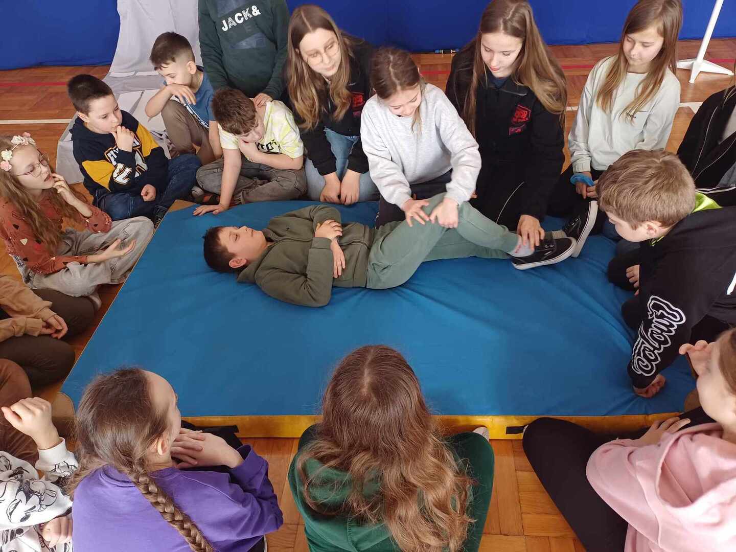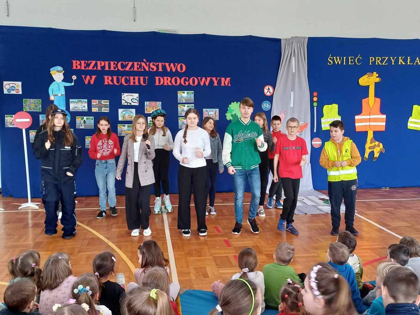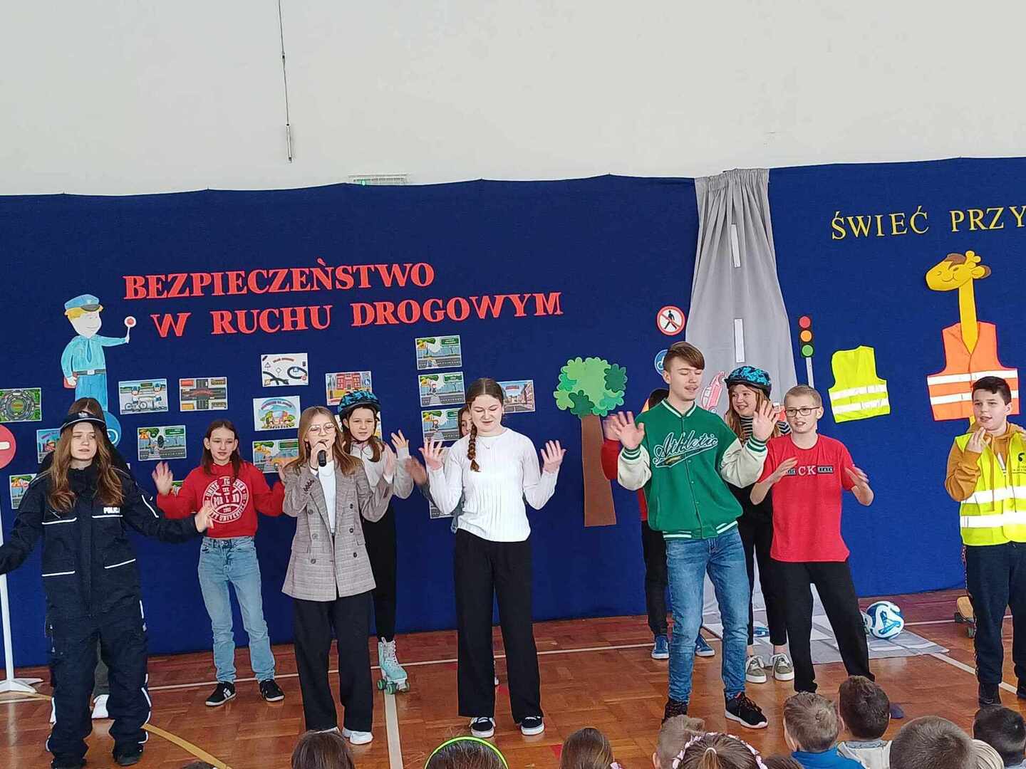 Środa 20 marca była w naszej szkole dniem zdominowanym przez Młodych Bohaterów Bezpieczeństwa. Drużyna złożona z uczniów klas: piątej, siódmej i ósmej przekazywała wiedzę dotyczącą bezpieczeństwa swoim młodszym kolegom. W pierwszej i trzeciej części naszego spotkania w sali gimnastycznej, przeprowadzone zostały warsztaty z udzielania pierwszej pomocy. Dzięki naszym uczniom, którzy są członkami Młodzieżowej Drużyny Pożarniczej, dzieci z klas młodszych dowiedziały się jak zadbać o własne bezpieczeństwo, przypomniały sobie numery alarmowe. Młodzież poinformowała, jak poprawnie złożyć zgłoszenie, jak ułożyć poszkodowanego w pozycji bezpiecznej i wykonać resuscytację krążeniowo – oddechową. W środkowej części odbyło się przedstawienie o tematyce związanej z Bezpieczeństwem w Ruchu Drogowym promujące prawidłowe zachowania na drodze. Młodzieży pomagali dorośli w składzie: Patrycja Wieczorek – reżyser, Katarzyna Tkaczyk, Olga Mosionek, Kinga Paul i Dagmara Komorowska– scenografia, Joanna Puk – przygotowanie warsztatów pierwszej pomocy. Dzięki uczestnictwu w takich spotkaniach wzrasta świadomości naszych uczniów sprzyjająca bezpieczeństwu własnemu i innych, a także zostają oni przygotowani do racjonalnych zachowań w przypadku wystąpienia zagrożeń.