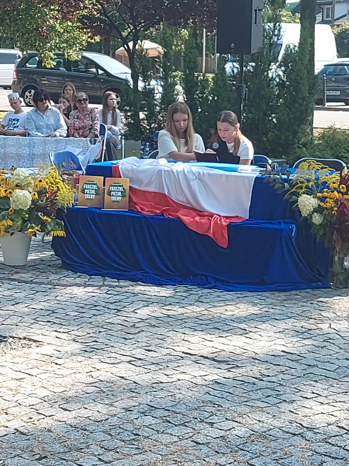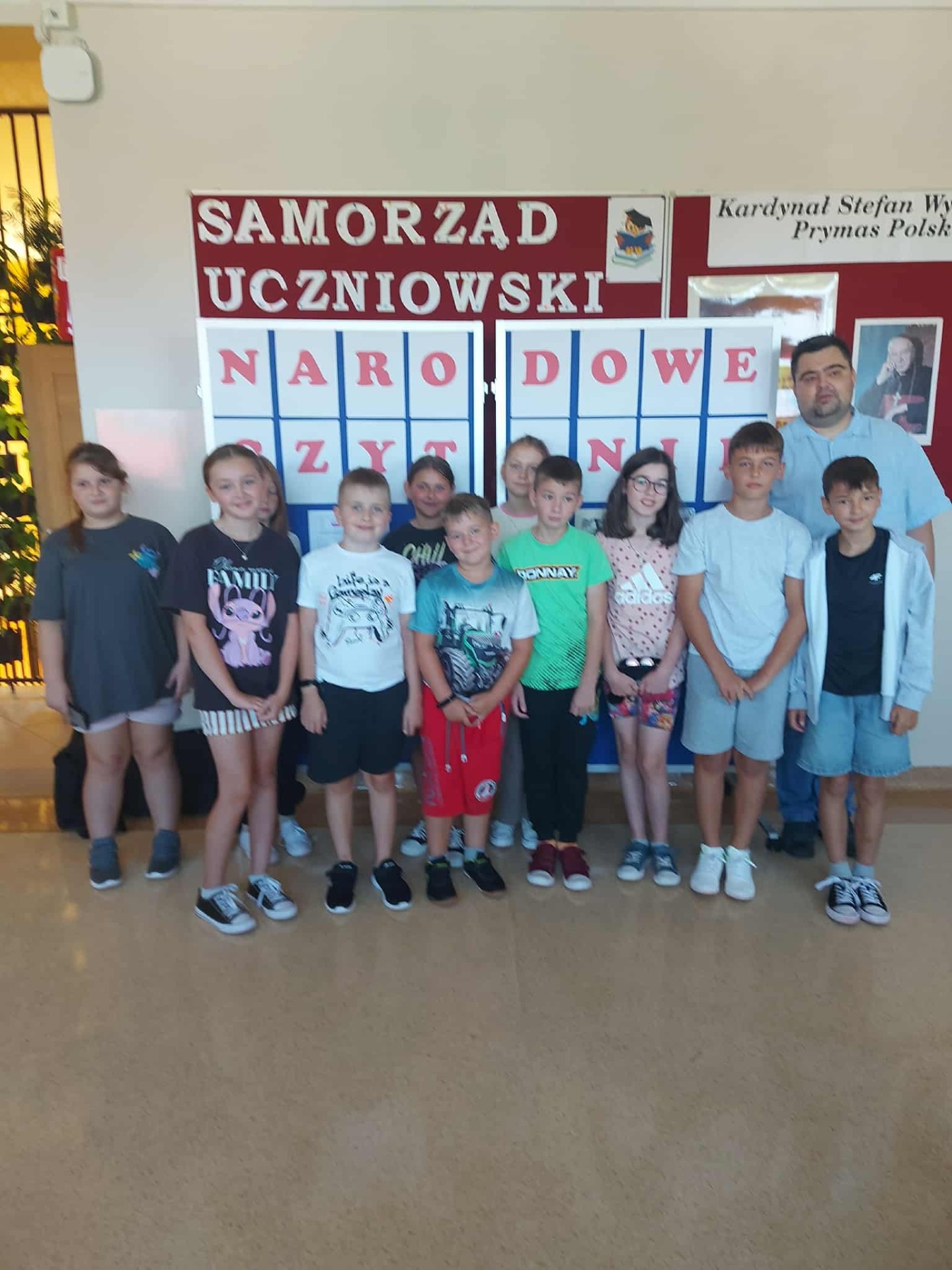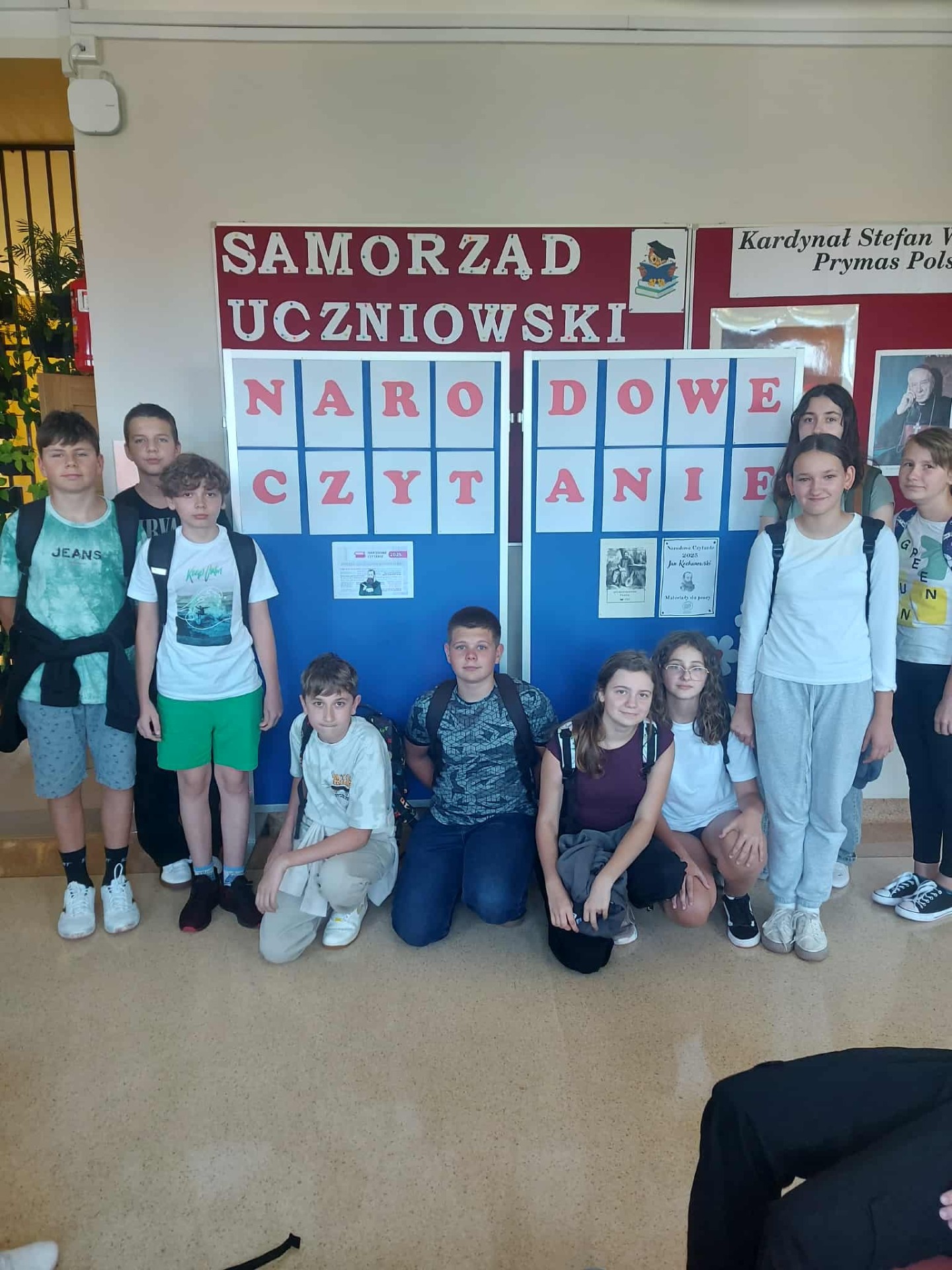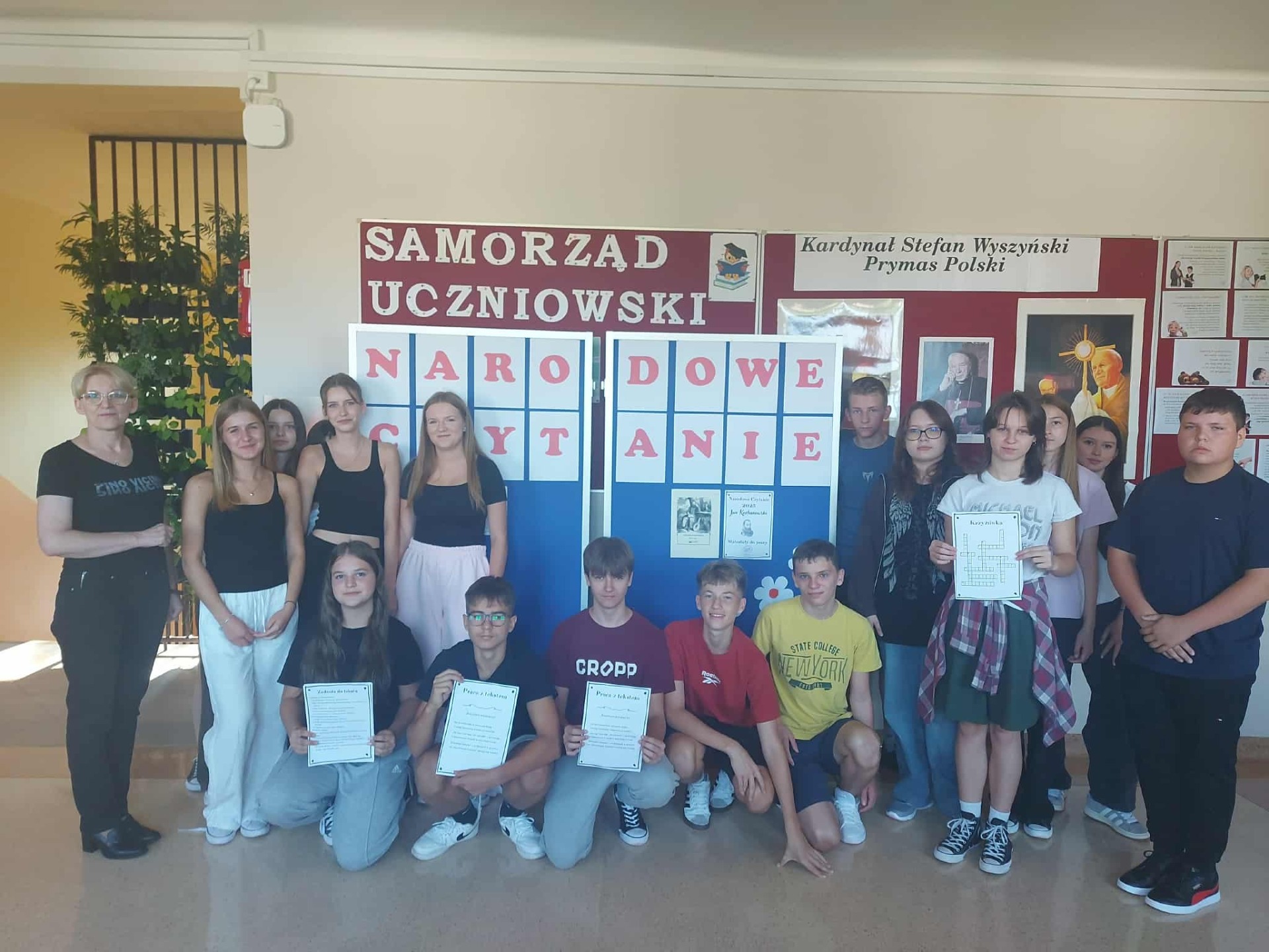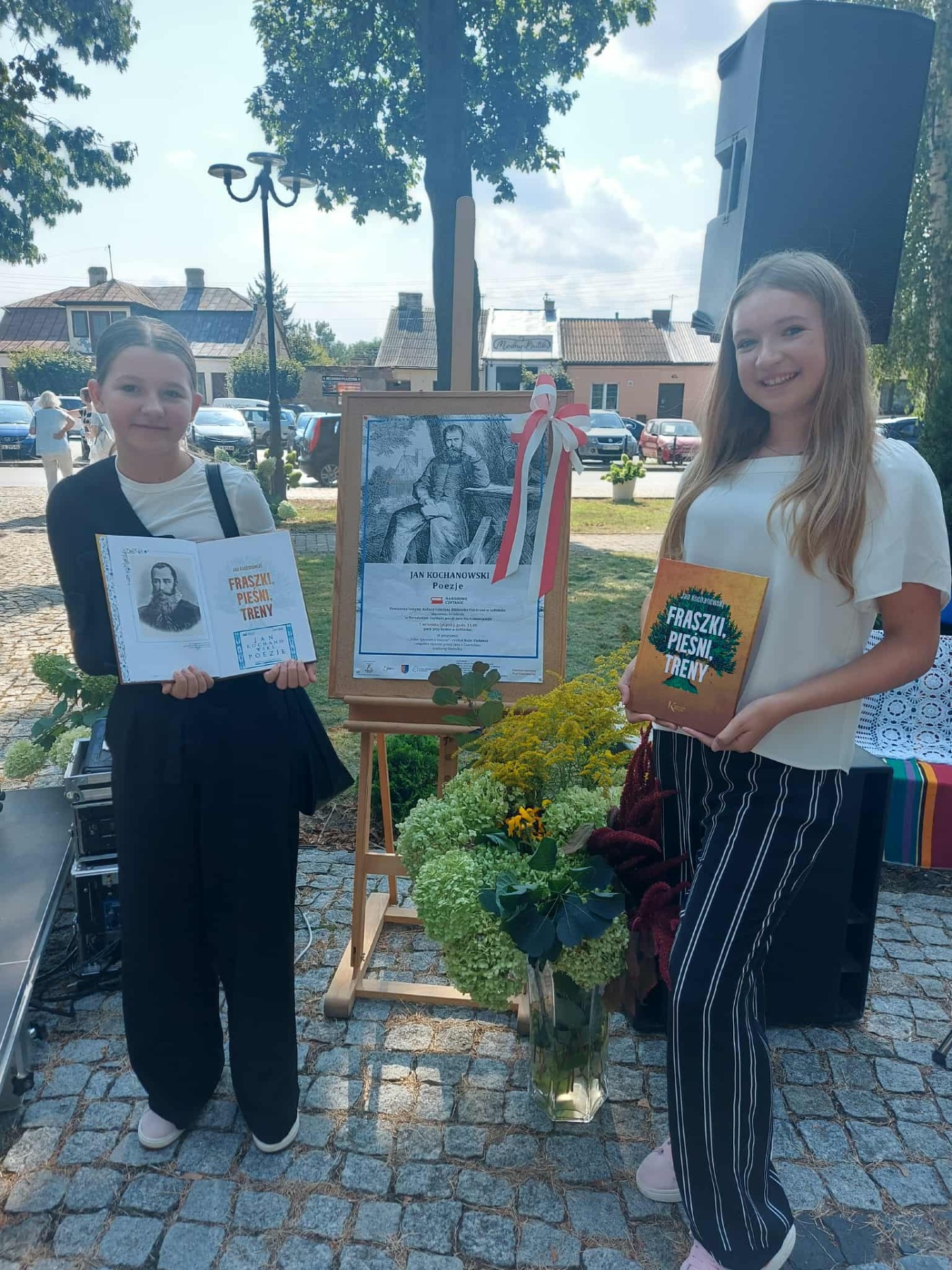 W słoneczny, piątkowy dzień 5 września uczestniczyliśmy w Narodowym Czytaniu Poezji Jana Kochanowskiego w jedlińskim parku. Ponadczasowe utwory Mistrza czytali zaproszeni goście, przedstawiciele władz powiatu i gminy, a także uczniowie szkół z terenu gminy Jedlińsk . Naszą szkołę reprezentowały uczennice klasy siódmej- Amelia Bartnik oraz Wiktoria Drożdż, które przypomniały zawarte w Pieśniach rady i pouczenia: " Nie wierz Fortunie, co siedzisz wysoko...", " Stateczny umysł pamiętaj zachować..." Wszystkich zebranych oczarował Kuba Blokesz, który po mistrzowsku śpiewał poezję poety z Czarnolasu. Dziękujemy Gminnej Bibliotece Publicznej w Jedlińsku za zaproszenie oraz organizację niecodziennego przedsięwzięcia. Narodowe Czytanie uczciliśmy też w naszej szkole. Uczniowie starszych klas rozwiązywali krzyżówki, sprawdzali swoją uważność w czytaniu. Młodsi " bawili się" tekstem fraszki, dobierając odpowiednie wersy, a najmłodsi kolorowali portrety Jana Kochanowskiego. W bibliotece szkolnej pojawiła się wystawa dzieł Mistrza wzbogacona o nową książkę podarowaną przez przedstawicieli Powiatowego Instytutu Kultury.