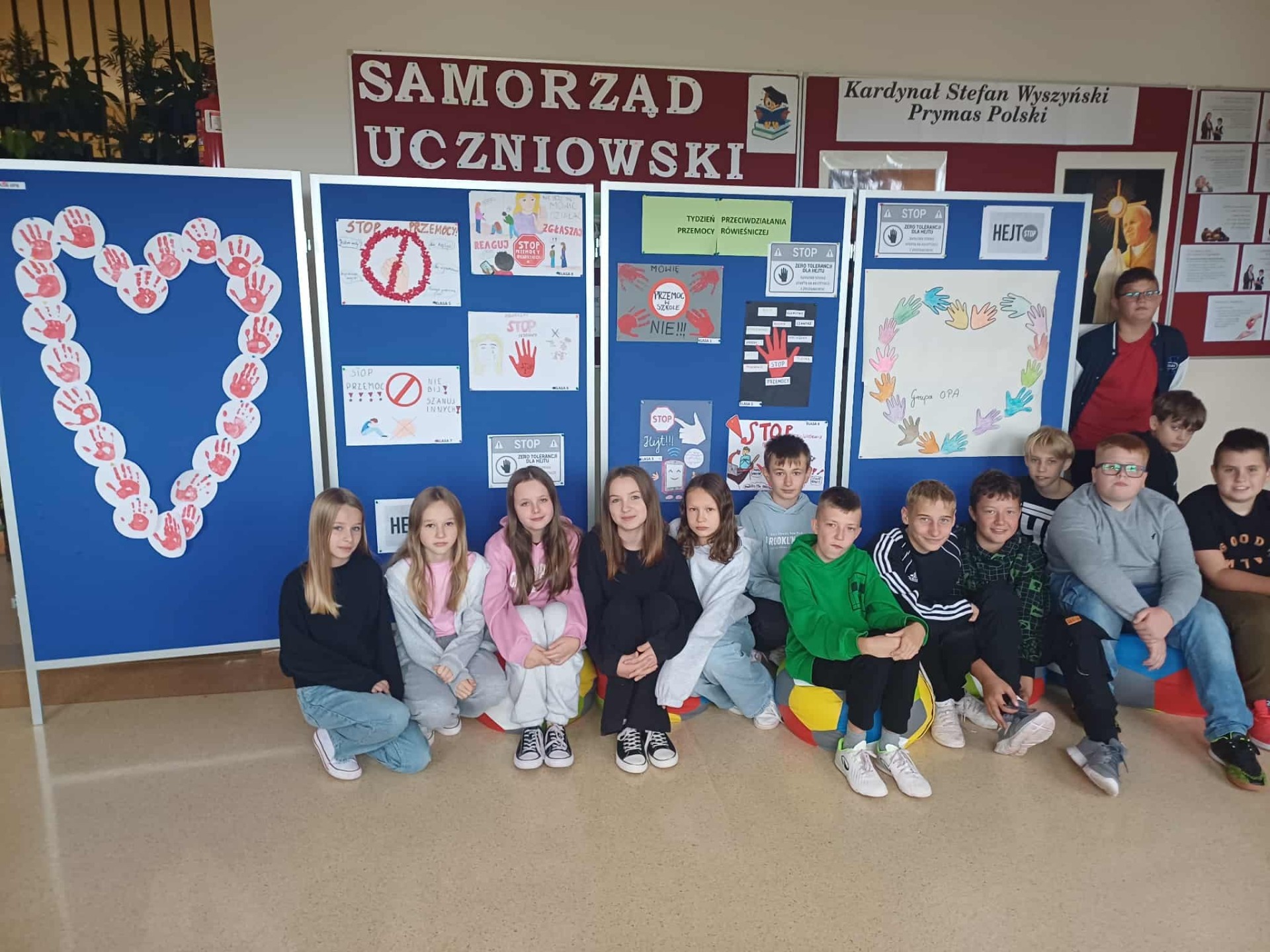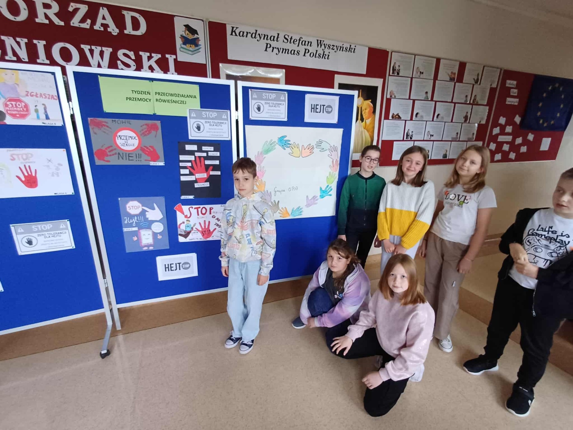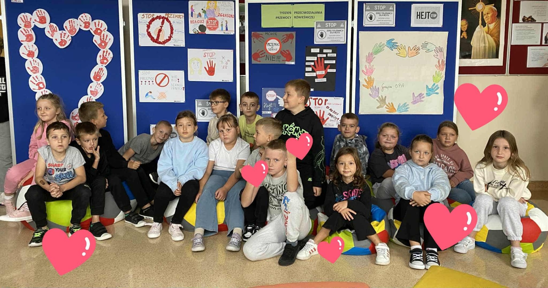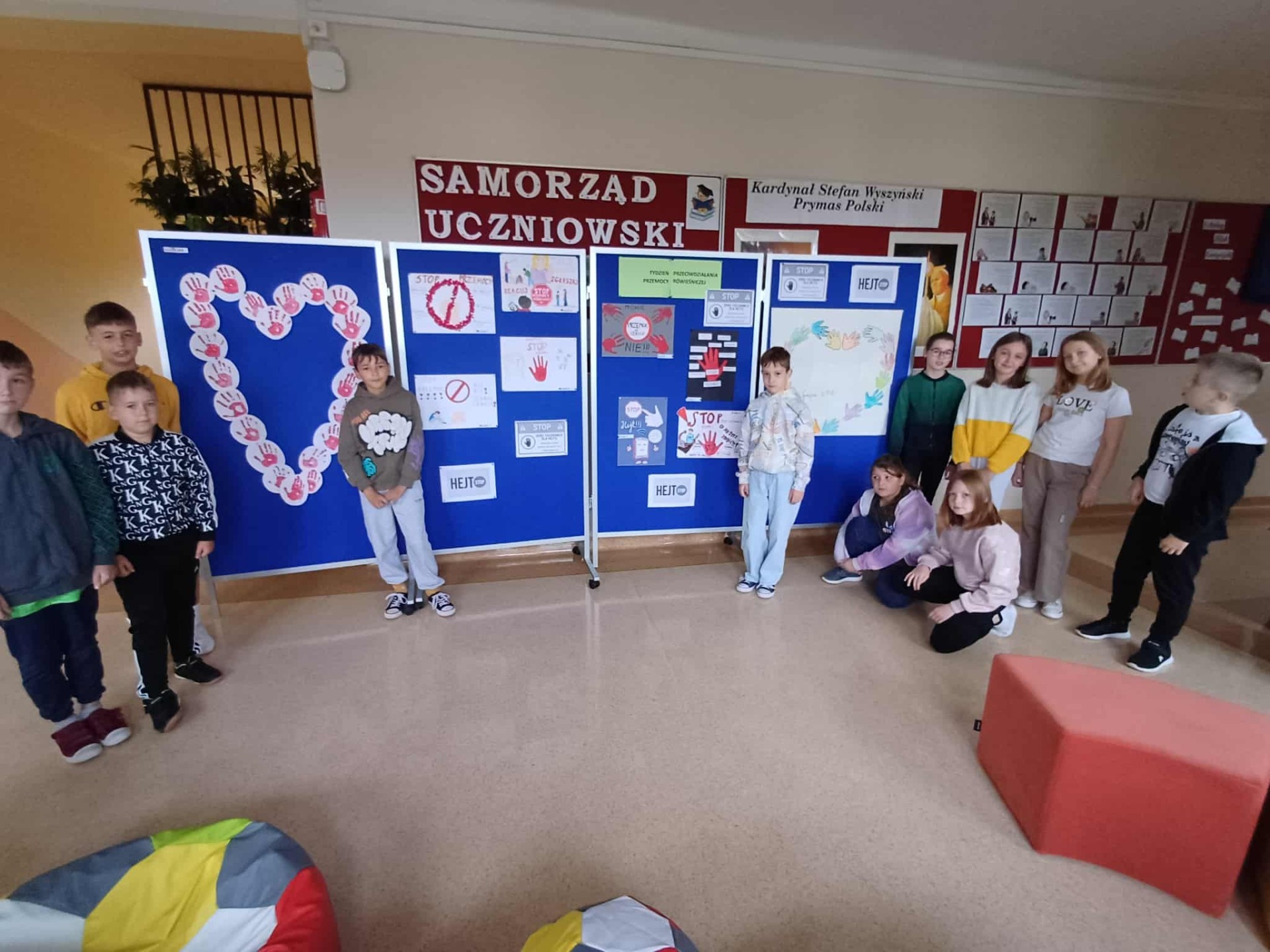 Dziś w Naszej Szkole zainaugurowaliśmy Tydzień Przeciwdziałania Przemocy Rówieśniczej. To ważny czas, w którym chcemy wspólnie promować szacunek, empatię i bezpieczeństwo w relacjach rówieśniczych. Każda klasa przygotowała wyjątkową pracę plastyczną związaną z tematem przeciwdziałania przemocy. Dzięki zaangażowaniu uczniów i wychowawców powstała piękna wystawa, którą dziś mogli podziwiać wszyscy uczniowie. Dziękujemy wszystkim za kreatywność, serce i wspólne działanie na rzecz budowania przyjaznej atmosfery w Naszej Szkole!