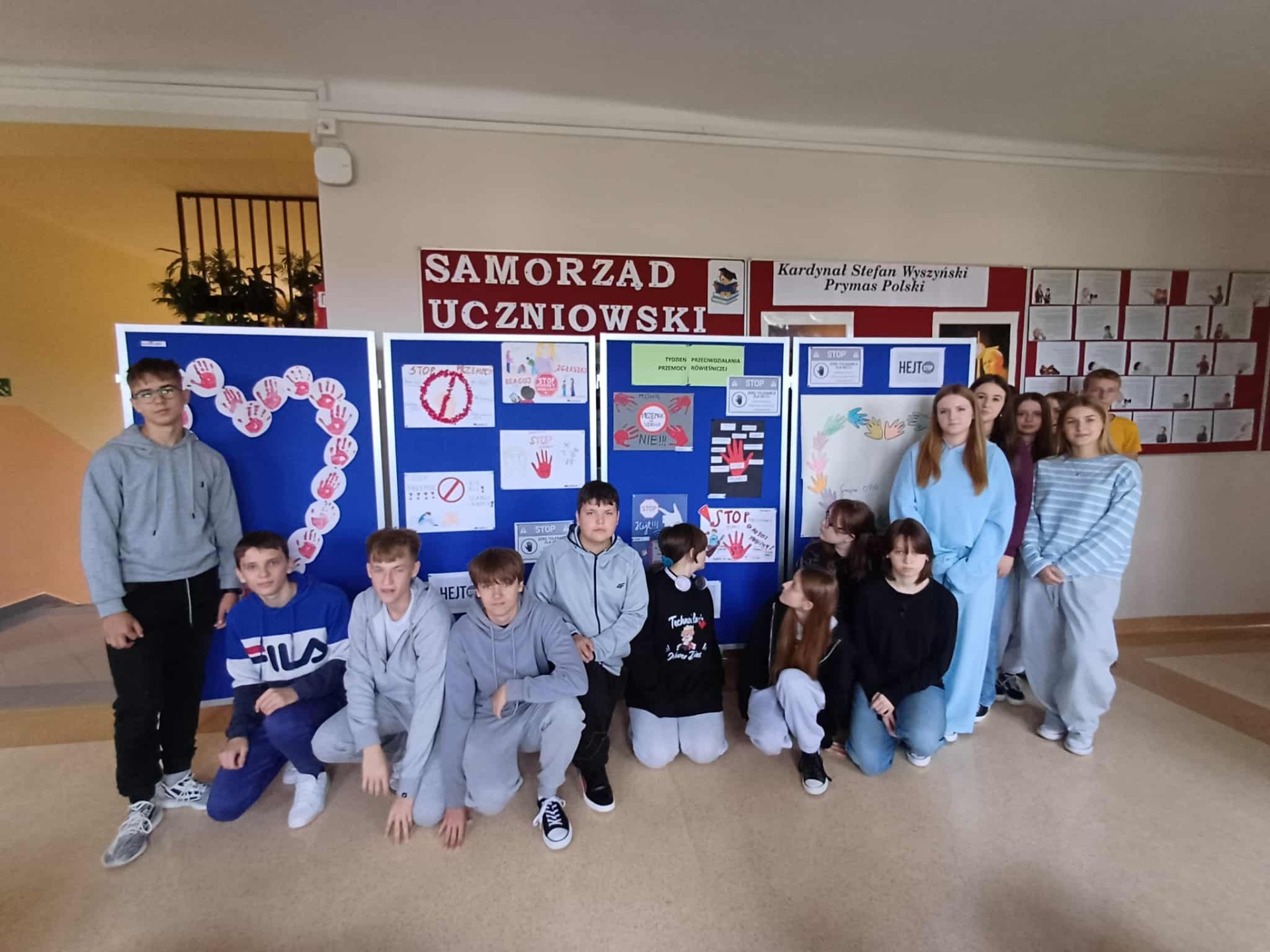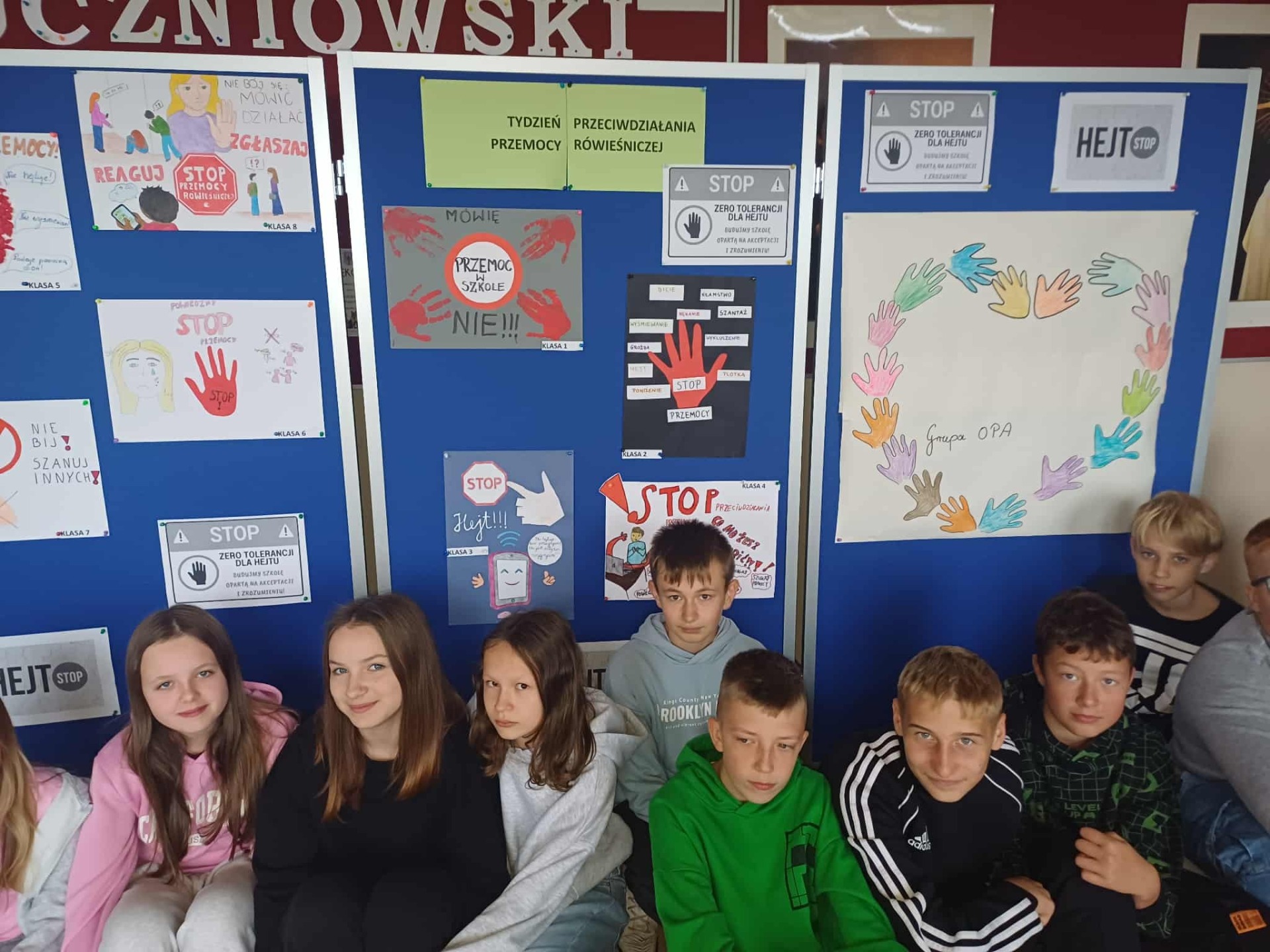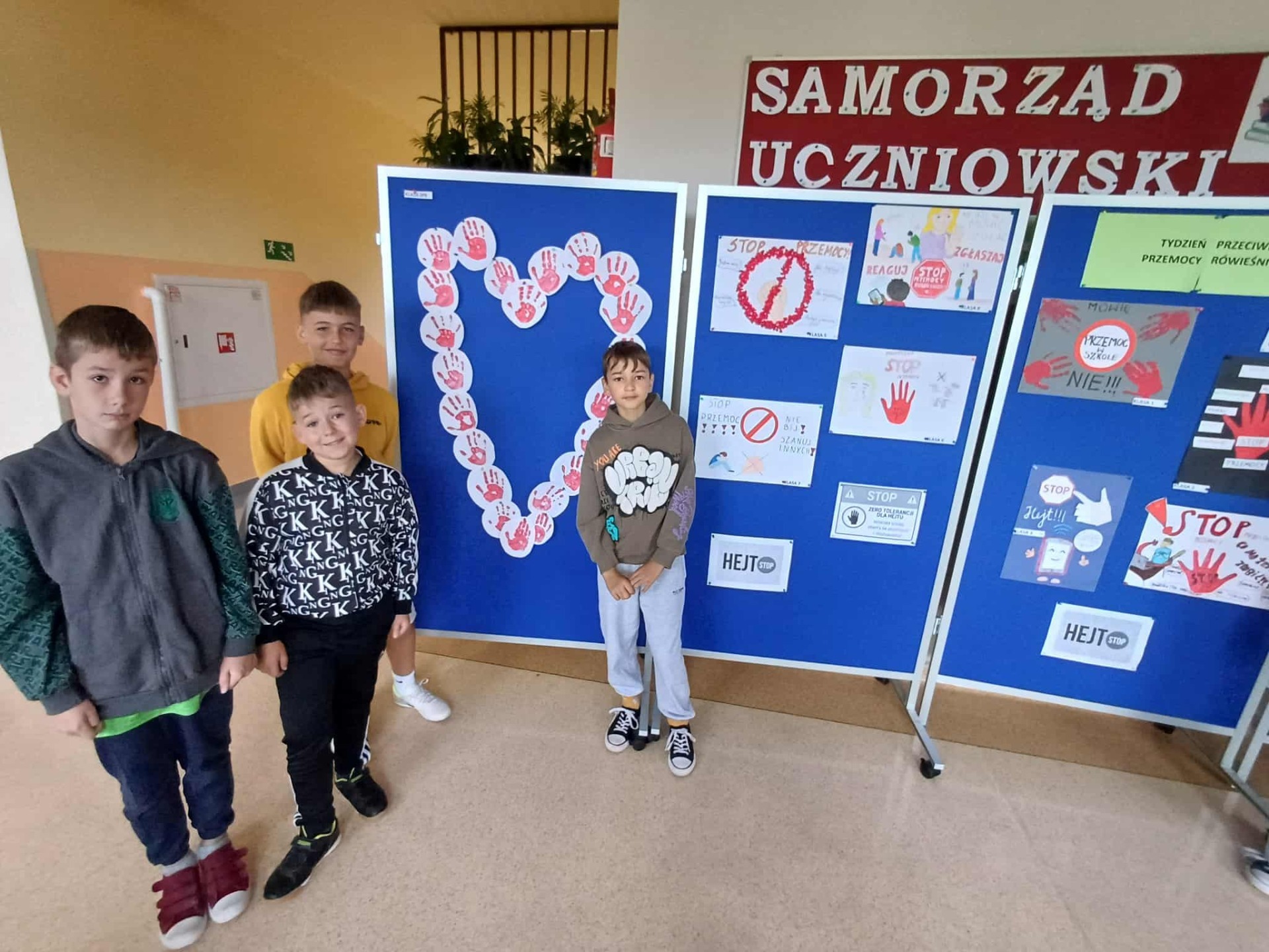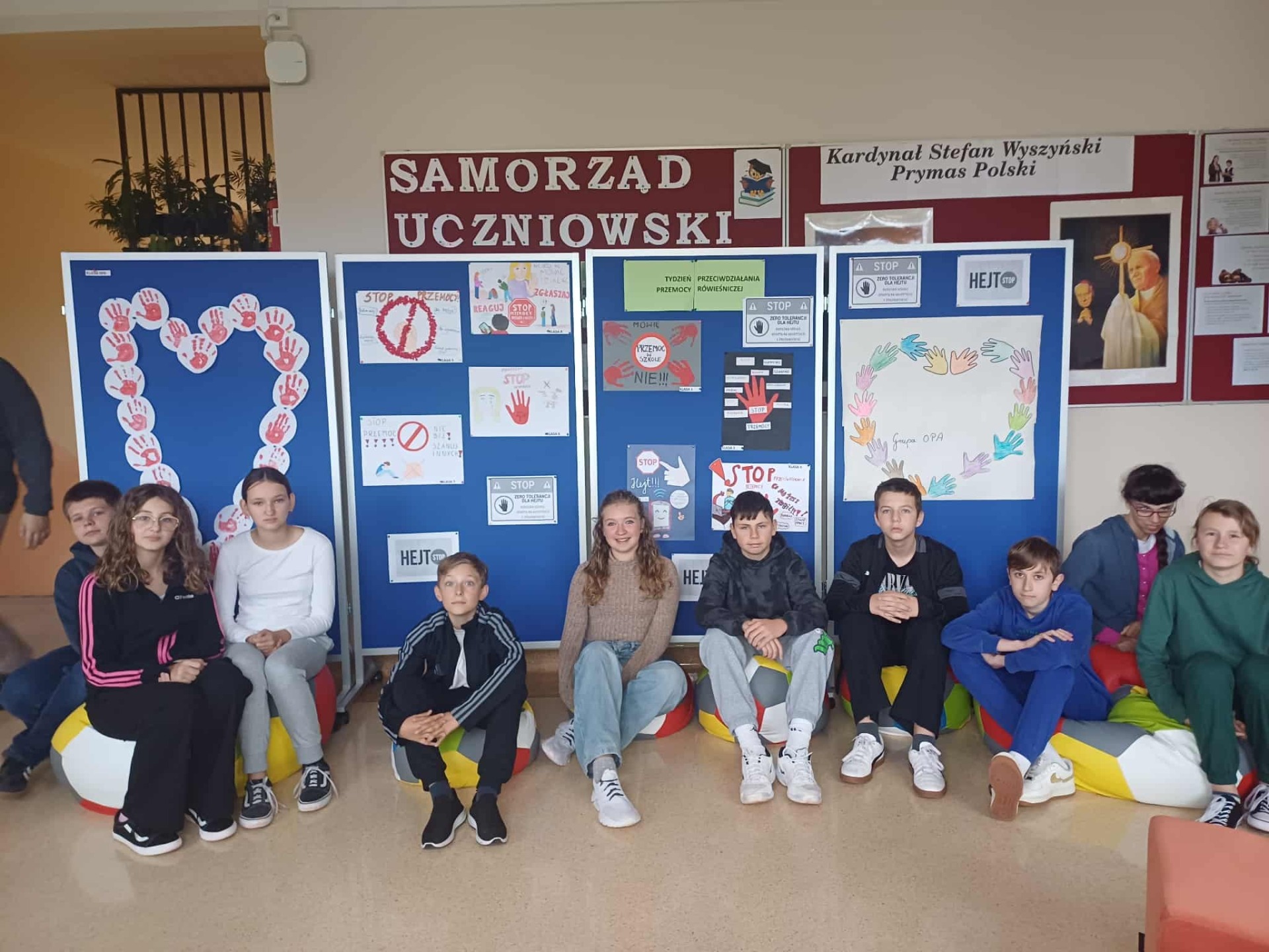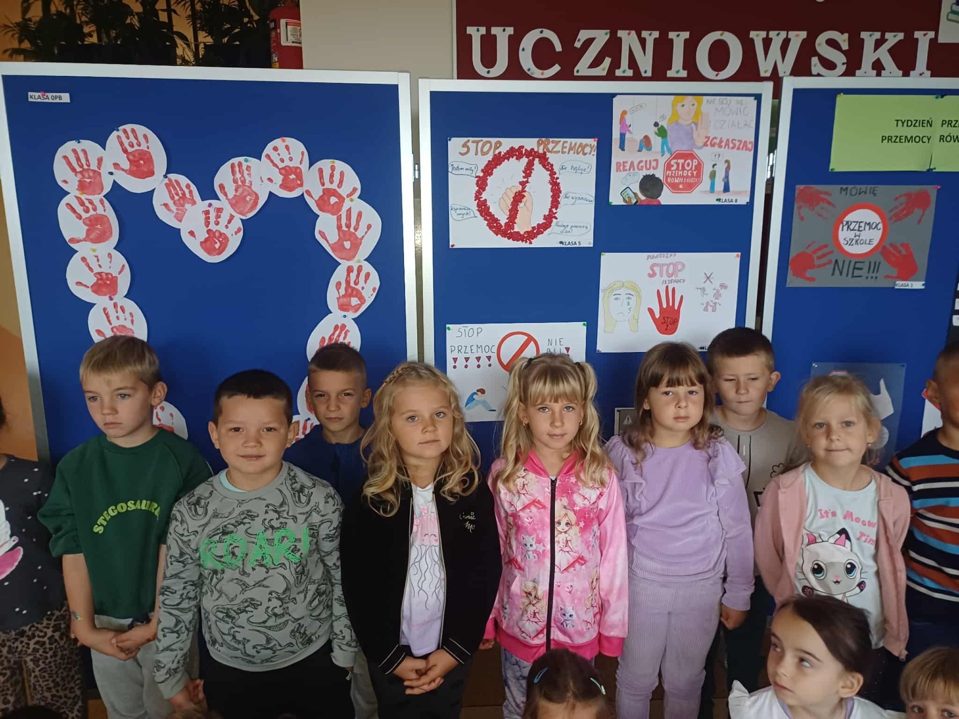 Dziś w Naszej Szkole zainaugurowaliśmy Tydzień Przeciwdziałania Przemocy Rówieśniczej. To ważny czas, w którym chcemy wspólnie promować szacunek, empatię i bezpieczeństwo w relacjach rówieśniczych. Każda klasa przygotowała wyjątkową pracę plastyczną związaną z tematem przeciwdziałania przemocy. Dzięki zaangażowaniu uczniów i wychowawców powstała piękna wystawa, którą dziś mogli podziwiać wszyscy uczniowie. Dziękujemy wszystkim za kreatywność, serce i wspólne działanie na rzecz budowania przyjaznej atmosfery w Naszej Szkole!