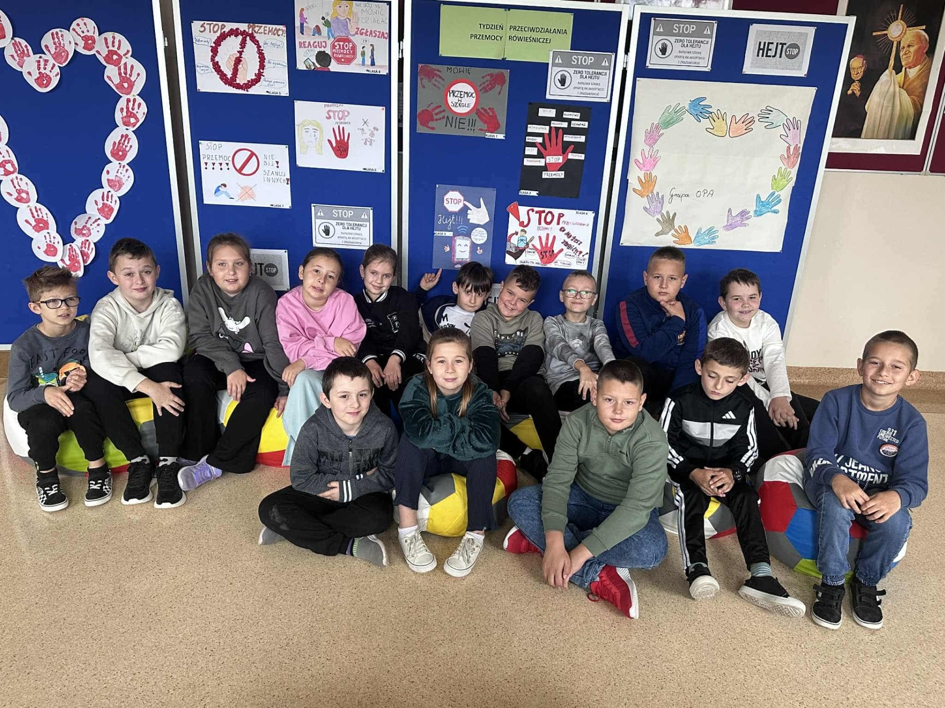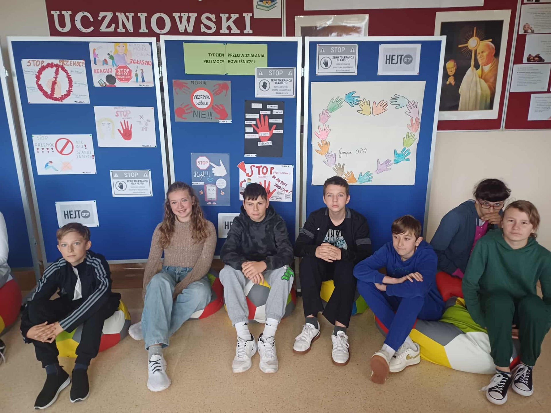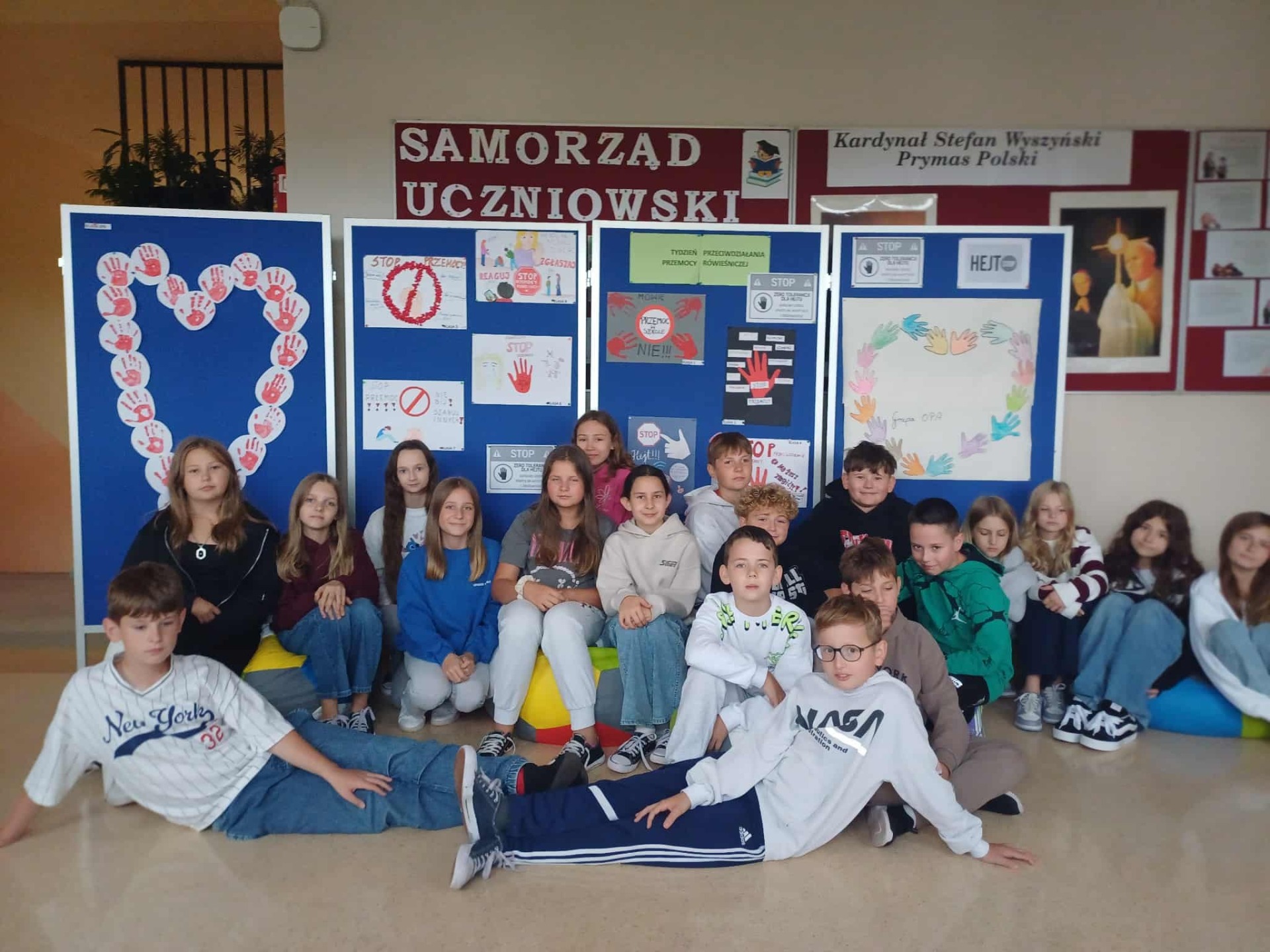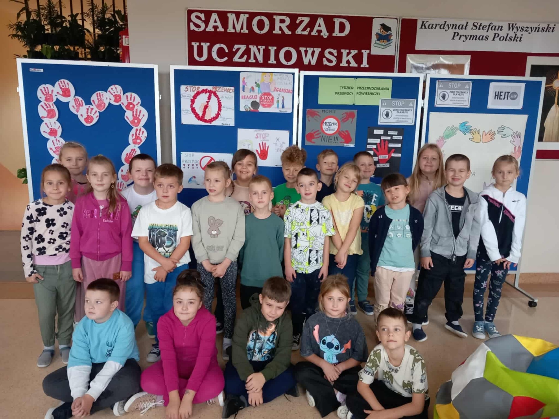 Dziś w Naszej Szkole zainaugurowaliśmy Tydzień Przeciwdziałania Przemocy Rówieśniczej. To ważny czas, w którym chcemy wspólnie promować szacunek, empatię i bezpieczeństwo w relacjach rówieśniczych. Każda klasa przygotowała wyjątkową pracę plastyczną związaną z tematem przeciwdziałania przemocy. Dzięki zaangażowaniu uczniów i wychowawców powstała piękna wystawa, którą dziś mogli podziwiać wszyscy uczniowie. Dziękujemy wszystkim za kreatywność, serce i wspólne działanie na rzecz budowania przyjaznej atmosfery w Naszej Szkole!