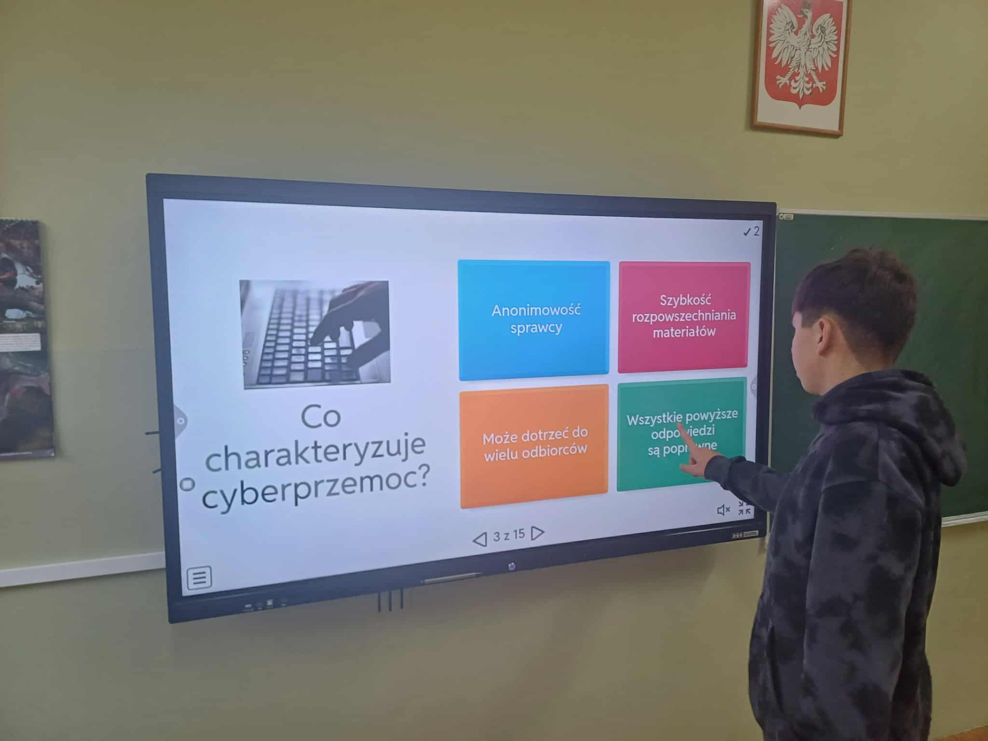 Podczas spotkania uczniowie dowiedzieli się, że każdy ma prawo do szacunku, bezpieczeństwa i wsparcia. Wspólnie rozmawialiśmy o tym, jak ważne jest, by nie pozostawać obojętnym wobec przemocy – zarówno w świecie realnym, jak i wirtualnym. Dziękujemy wszystkim za aktywny udział i otwartość podczas dyskusji. Pamiętajmy – razem możemy budować szkołę wolną od przemocy!