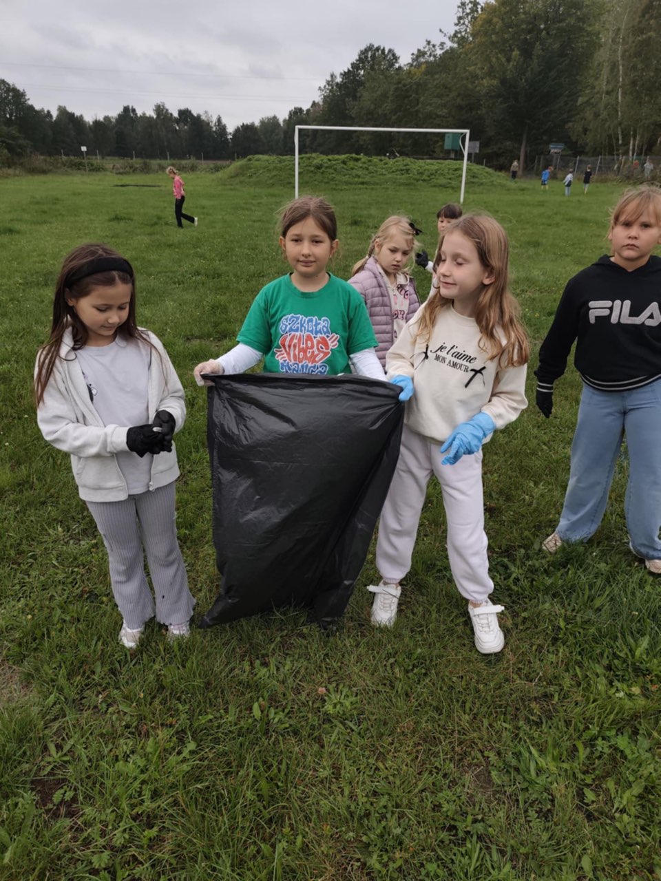 Uczniowie zostali wyposażeni w rękawiczki i worki na odpady, a do swoich zadań podeszli z dużym zaangażowaniem. Zbierali papier, plastik, szkło i inne śmieci, ucząc się przy okazji, jak ważne jest odpowiedzialne postępowanie z odpadami oraz troska o czystość naszej planety.