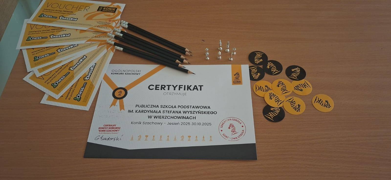 30 października o godz. 9.00 w szkołach w Polsce, Niemczech, Francji, Hiszpanii i we Włoszech uczniowie rozpoczęli rozwiązywanie 30 zadań szachowych w ramach wyjątkowego konkursu " Konik Szachowy ". To wydarzenie, które łączy młodych miłośników logicznego myślenia, matematyki i strategii z Europy. W tegorocznej jesiennej edycji bierze udział ponad 1000 szkół z pięciu krajów. Konkurs nawiązuje swoją nazwą do figury szachowej - konia, który porusza się w charakterystyczny sposób, wymagający planowania i przewidywania, czyli dokładnie tych umiejętności, które uczestnicy muszą wykazać podczas zmagań. Uczniowie naszej szkoły: Weronika Kacperczyk, Alicja Ścipień, Jakub Jabłoński, Kamil Smyrda, Jarosław Kacperczyk, Fryderyk Sułek i Antoni Ścipień podjęli to niełatwe intelektualne zadanie. Po napisanym konkursie otrzymali szachowe upominki - figurki szachowe, naklejki oraz Vouchery ChessKids. Już dziś serdecznie im gratulujemy i z niecierpliwością czekamy na wyniki.