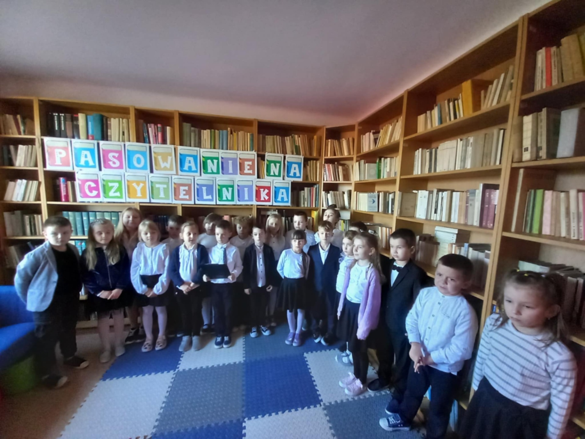 21 października2025 w bibliotece szkolnej odbyło się uroczyste pasowanie na czytelnika uczniów klasy ! Dzieci poznały regulamin biblioteki, wykazały się znajomością bajek i baśni oraz wiedzą, jak należy zachowywać się podczas czytania . Najważniejszym momentem było ślubowanie i pasowanie na czytelnika przeprowadzone w wyjątkowej, uroczystej atmosferze. Na zakończenie uczniowie otrzymali pamiątkowe zakładki. Gratulujemy naszym najmłodszym czytelnikom i życzymy wielu pięknych przygód z książką!