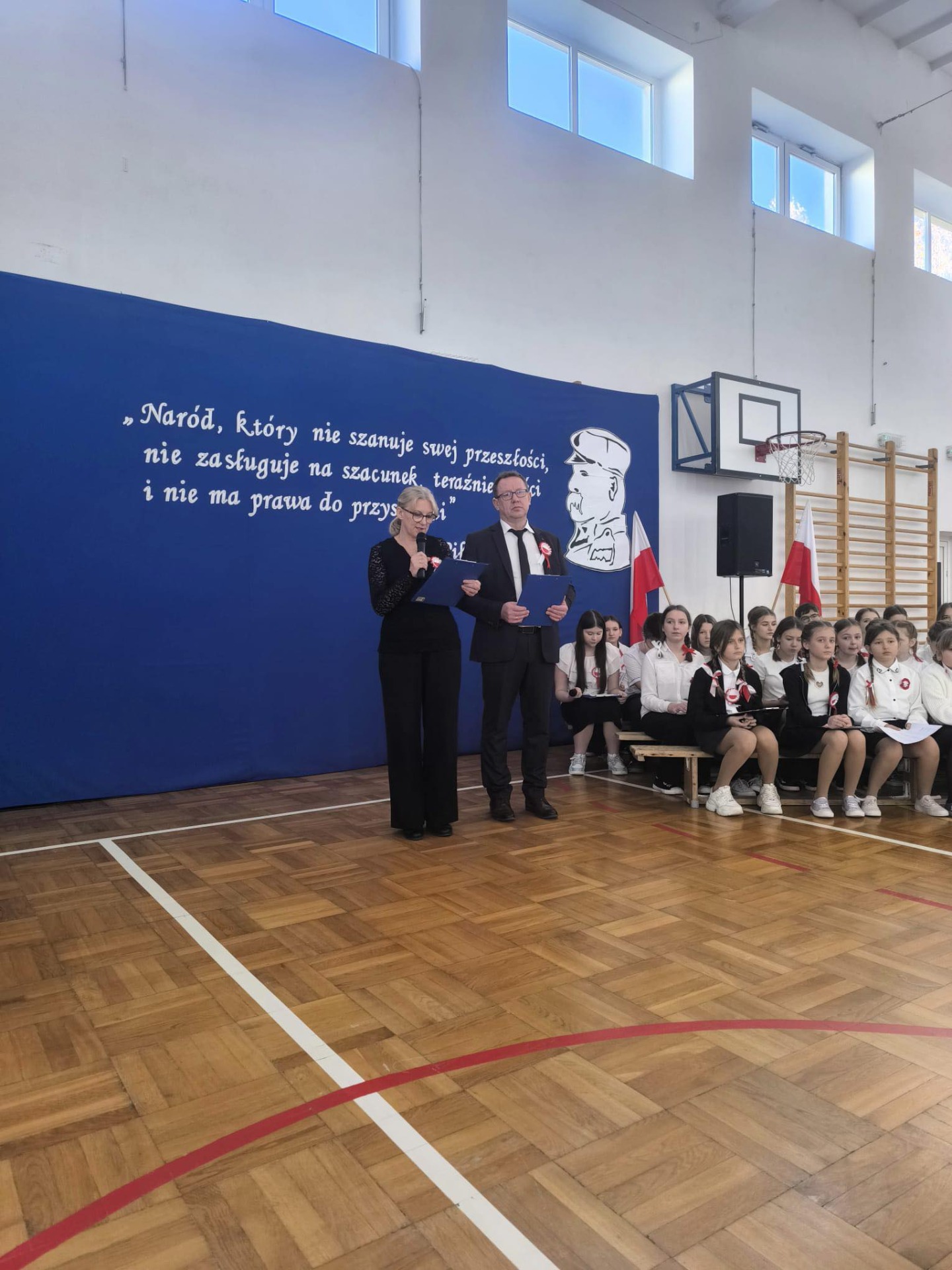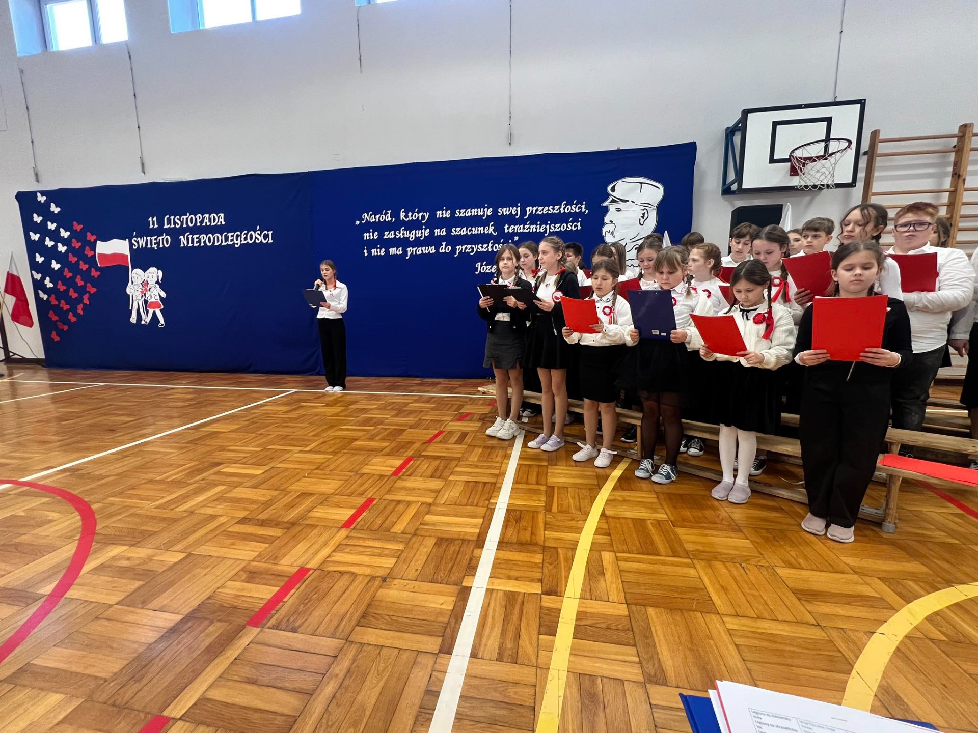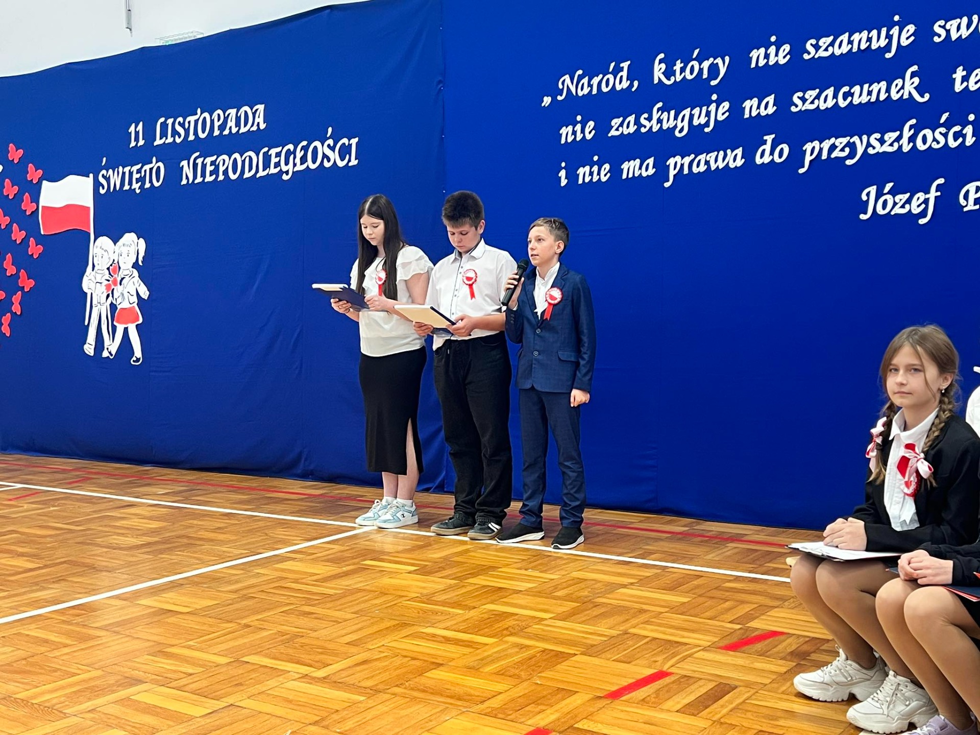 7 listopada uroczystą akademią uczciliśmy 107 rocznicę odzyskania niepodległości przez Polskę. Wyjątkowo zabrzmiał Mazurek Dąbrowskiego odśpiewany przez całą społeczność szkolną w obecności pocztu sztandarowego. Tym samym nasza szkoła włączyła się do udziału w kolejnej edycji ogólnopolskiej akcji "Szkoła do hymnu". W części artystycznej narratorzy przypomnieli koleje losu naszej Ojczyzny po zabory, zrywy narodowe, próby wskrzeszenia Polski, aż do odzyskania niepodległości w 1918 roku. Idealnym dopełnieniem rzeczowych komentarzy, przedstawiających tło historyczne, były liczne pieśni patriotyczne wykonane w porywający sposób przez chór szkolny oraz solistów.