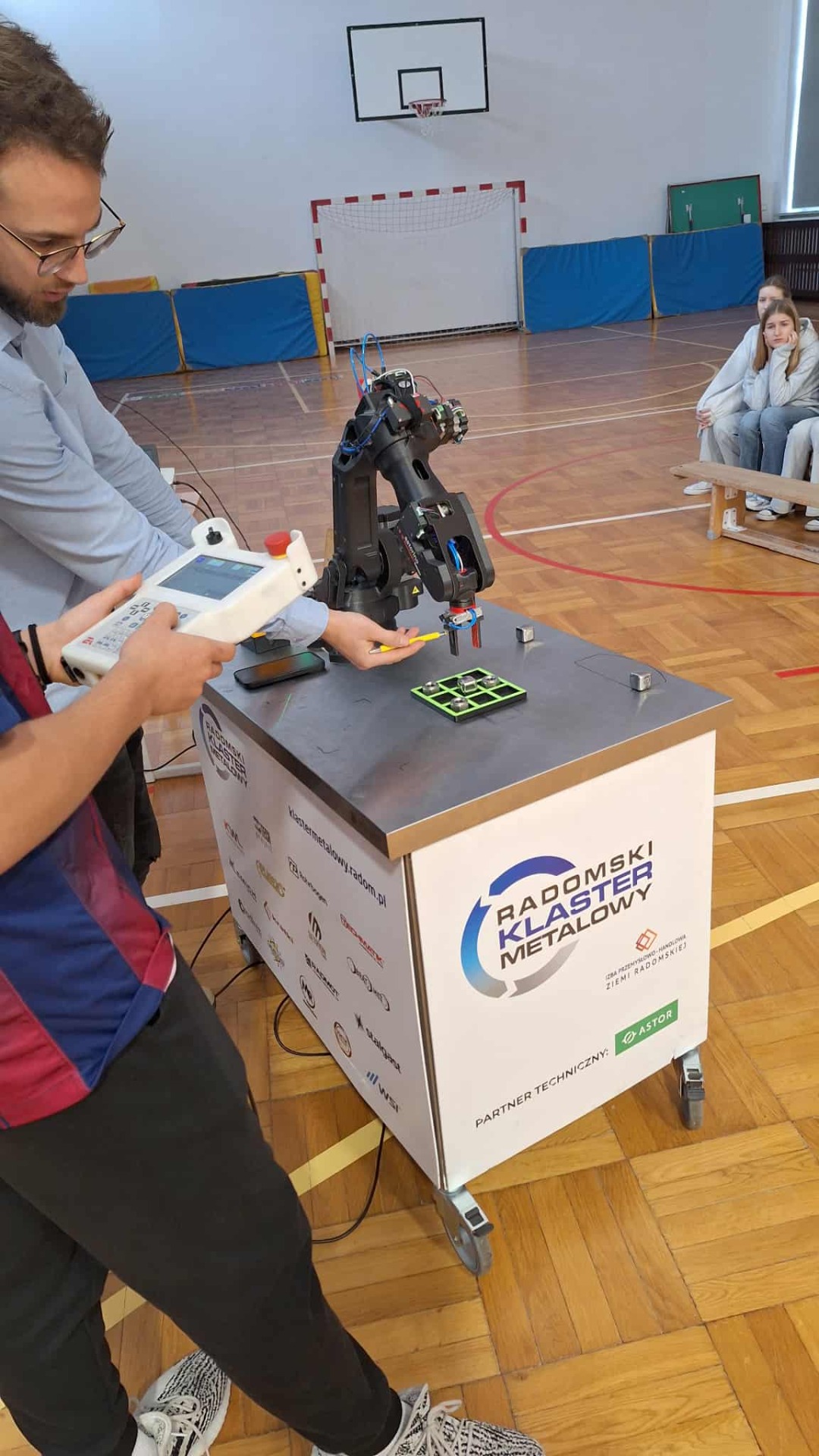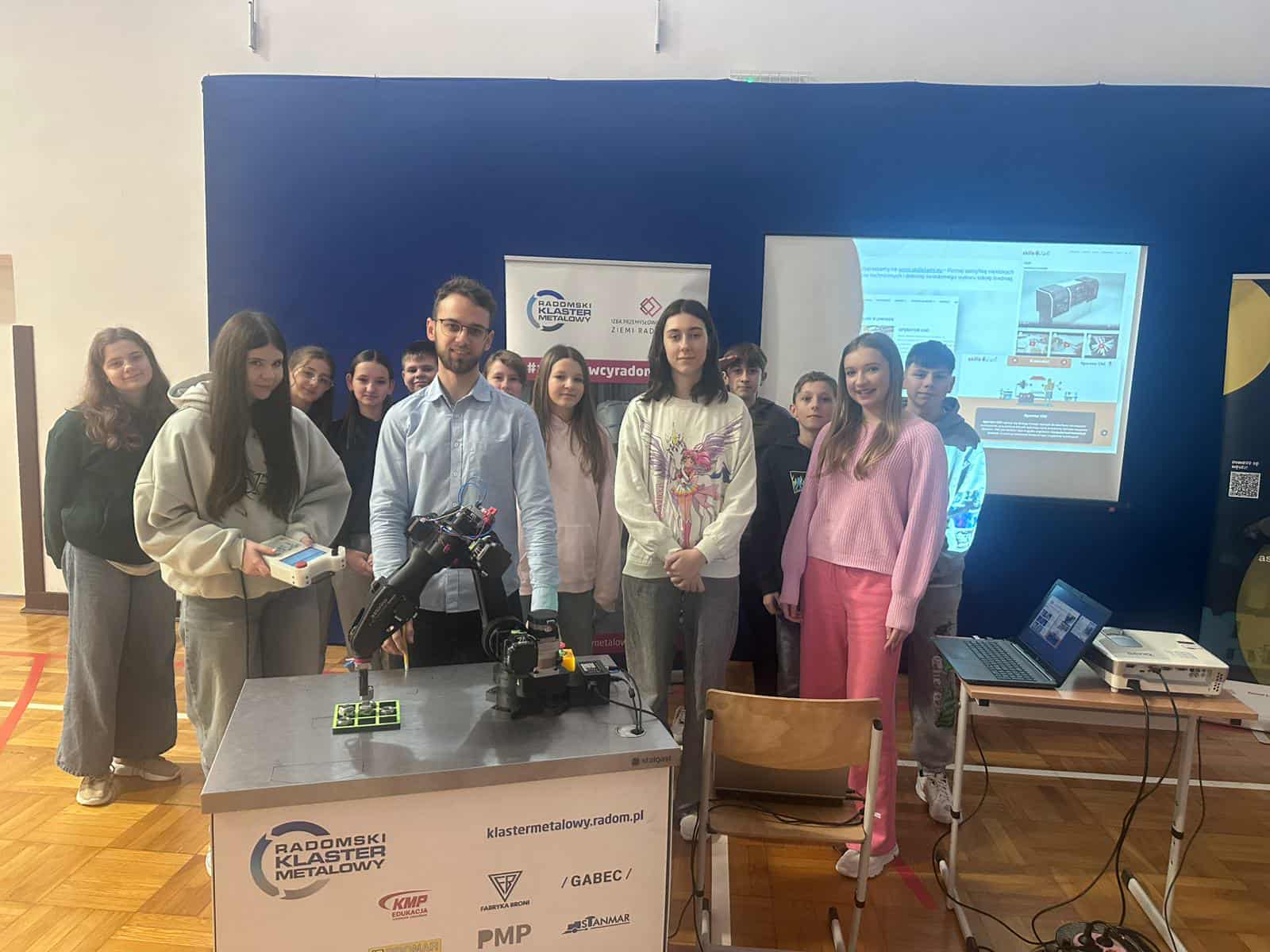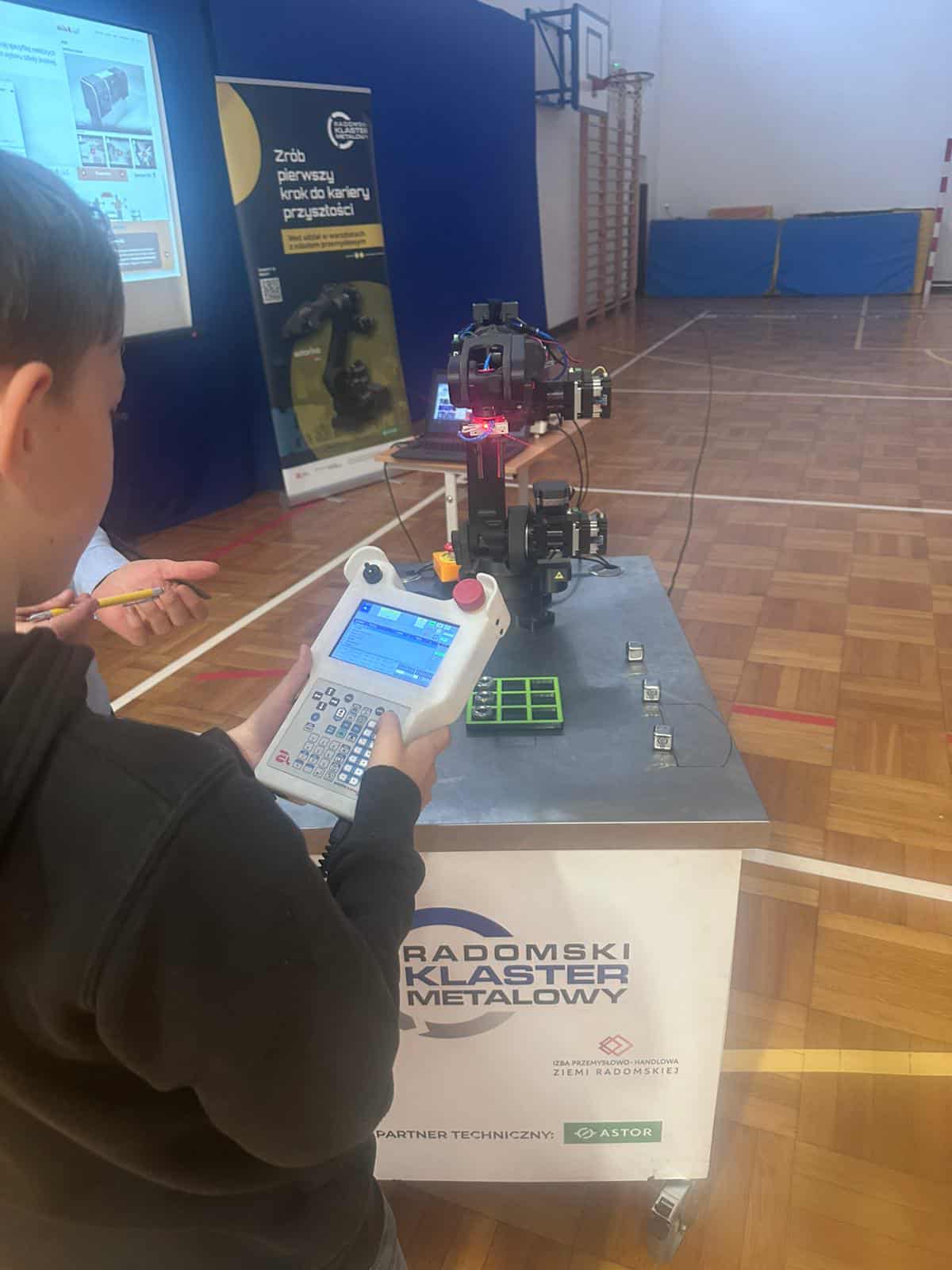 We wtorek 25 listopada , w ramach projektu realizowanego przez Radomski Klaster Metalowy, w naszej szkole odbyły się warsztaty z robotem edukacyjnym Astorino. Zajęcia skierowane były do uczniów klas 8 i 7 w celu promocji kształcenia technicznego i zawodowego oraz wsparcia uczniów w świadomym wyborze dalszej ścieżki edukacyjnej. Warsztaty składały się z części teoretycznej w której uczniowie zostali wprowadzeni w tematykę nowoczesnych technologii, i praktycznej polegającej na programowaniu i obsłudze ramienia robota edukacyjnego Astorino. Zajęcia realizowane w ramach projektu dały naszym uczniom możliwość kontaktu z nowoczesnymi technologiami oraz zainspirowały do wyboru szkoły technicznej lub zawodowej.