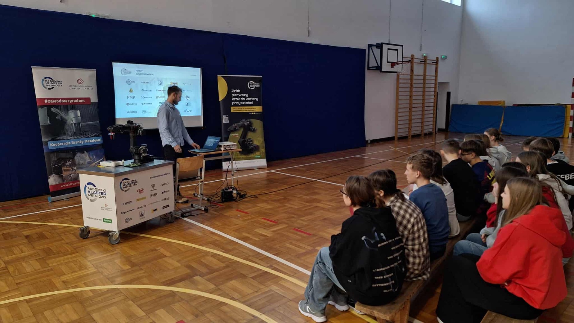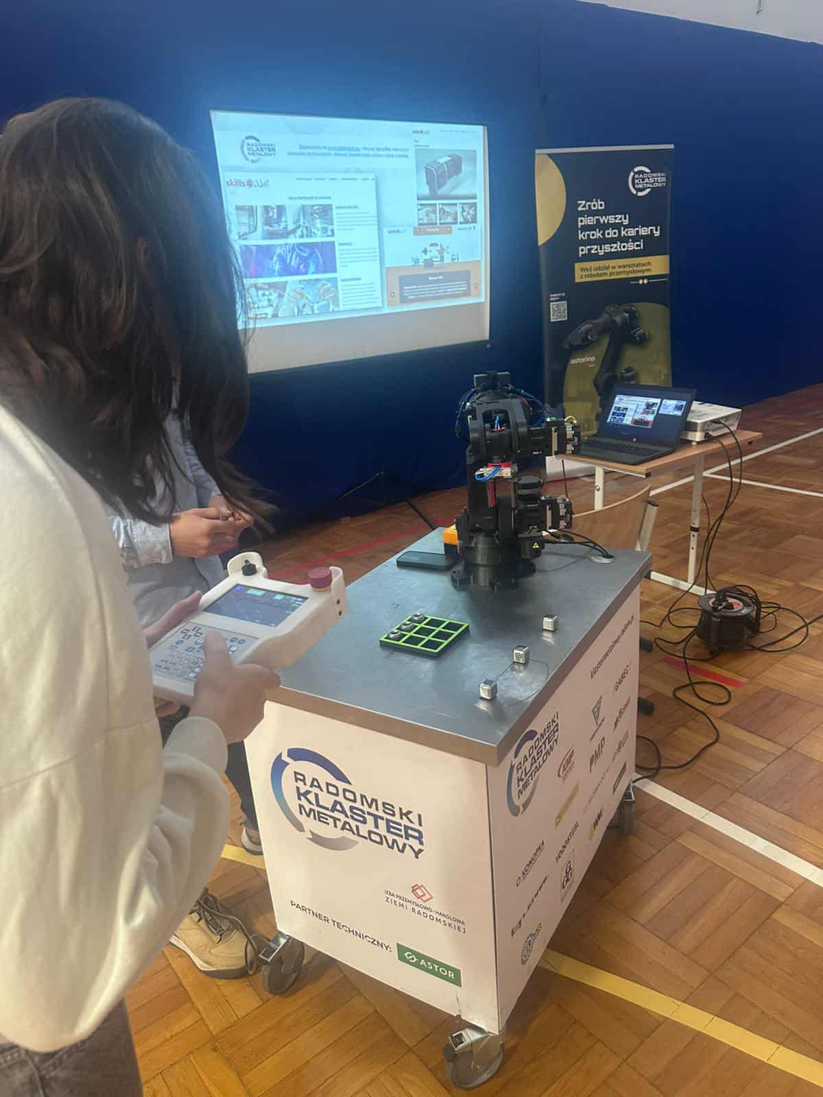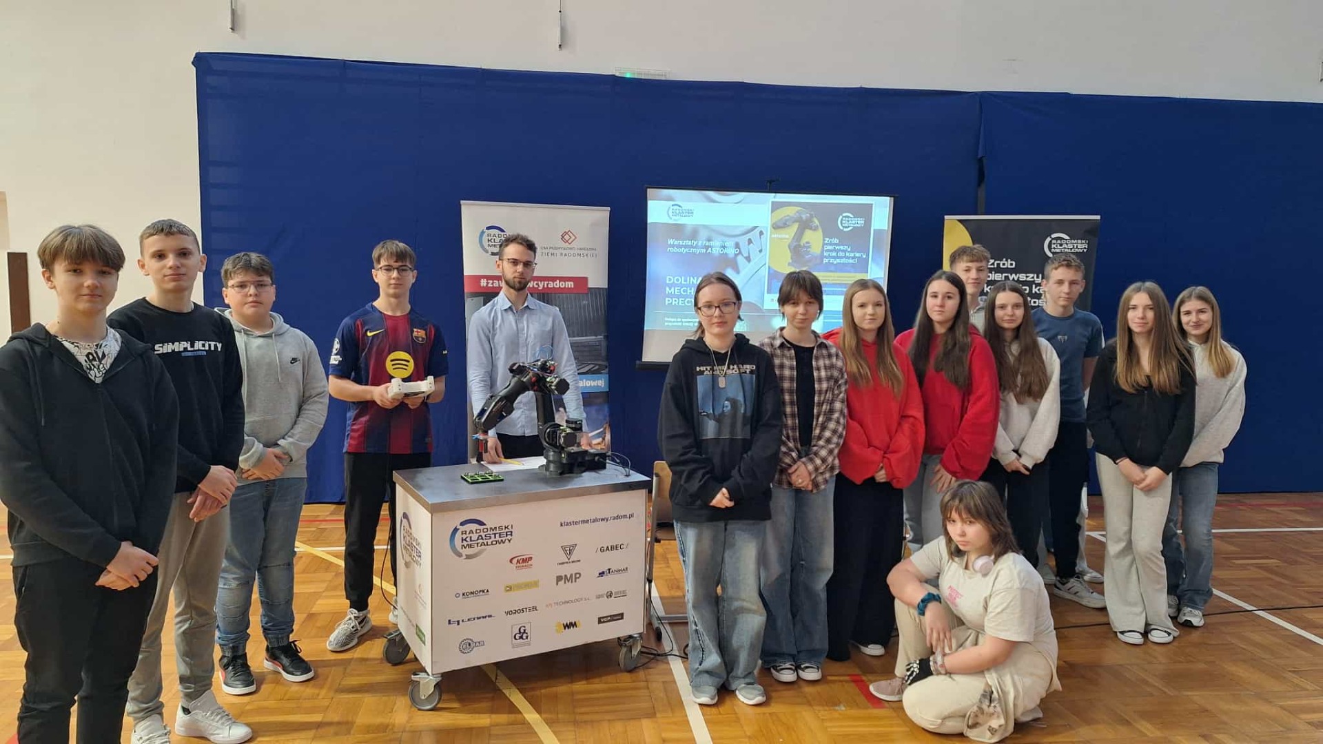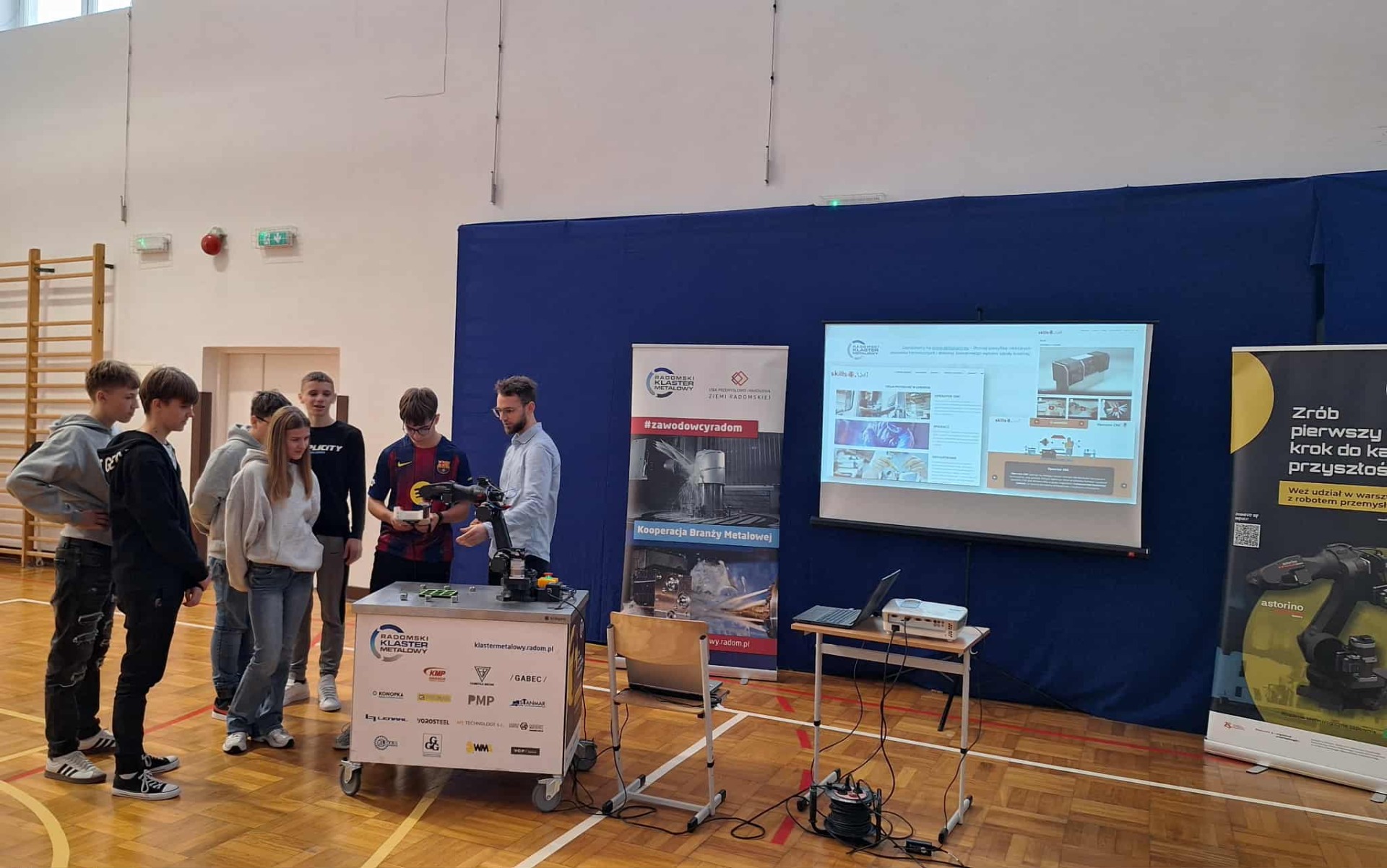 We wtorek 25 listopada , w ramach projektu realizowanego przez Radomski Klaster Metalowy, w naszej szkole odbyły się warsztaty z robotem edukacyjnym Astorino. Zajęcia skierowane były do uczniów klas 8 i 7 w celu promocji kształcenia technicznego i zawodowego oraz wsparcia uczniów w świadomym wyborze dalszej ścieżki edukacyjnej. Warsztaty składały się z części teoretycznej w której uczniowie zostali wprowadzeni w tematykę nowoczesnych technologii, i praktycznej polegającej na programowaniu i obsłudze ramienia robota edukacyjnego Astorino. Zajęcia realizowane w ramach projektu dały naszym uczniom możliwość kontaktu z nowoczesnymi technologiami oraz zainspirowały do wyboru szkoły technicznej lub zawodowej.
