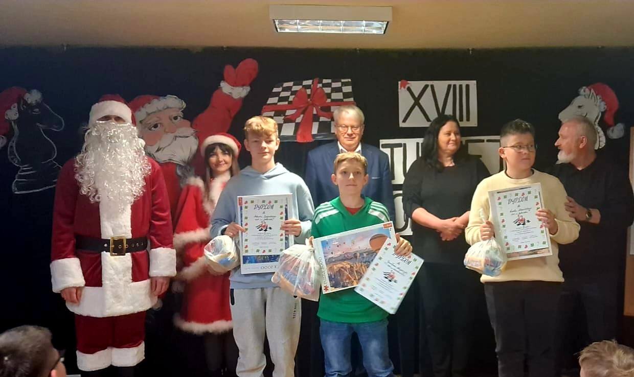 5 grudnia odbył się Mikołajkowy Turniej Szachowy, który przyciągnął zarówno początkujących, jak i bardziej doświadczonych graczy z całej gminy. Od samego rana panowała świąteczna atmosfera, a uczestnicy zasiedli do gry. Każda partia dostarczała wielu emocji. Zawodnicy wykazali się dużą koncentracją, sprytem i umiejętnością planowania kilku ruchów naprzód. Nie zabrakło też uśmiechu i sportowej rywalizacji. Na zakończenie wszyscy uczestnicy otrzymali słodkie upominki od Mikołaja i Śnieżynki, a najlepszym wręczono pamiątkowe dyplomy i nagrody.