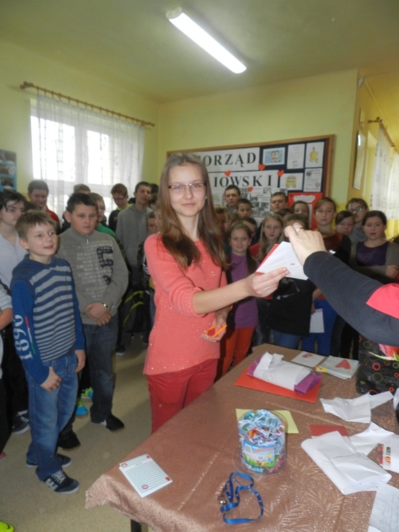 Uroczyście rozdane zostały także kartki walentynkowe. Każdy mógł wcześniej wysłać kartkę swojej sympatii za pośrednictwem "Poczty walentynkowej". To był bardzo radosny dzień w naszej szkole!