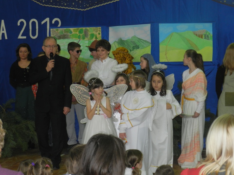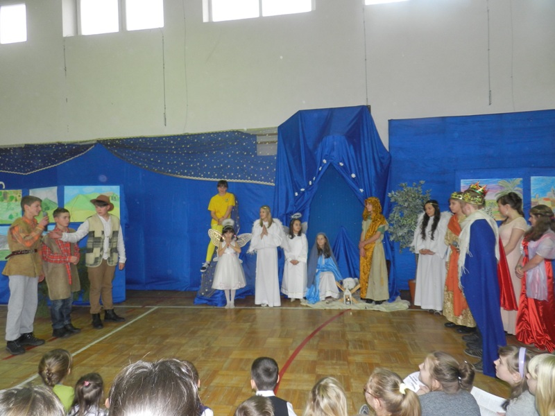 Czas świąt Bożego Narodzenia to okres wyjątkowy i magiczny. Każdy ma okazję, by zatrzymać się na chwilę i przypomnieć sobie, jakim wielkim cudem jest życie. Bardziej niż zwykle docenia się obecność rodziny, przyjaciół. Nasi Uczniowie w tym roku w szczególnie uroczysty sposób wprowadzili nas w tę świąteczną atmosferę i zaprezentowali jasełka pt. „Oszaleli Anieli” . Organizatorką występu była p. Justyna Turzyńska, a pomagała jej p. Marta Piasek. Uroczystość uświetniła obecność Wójta Gminy Jedlińsk p. Wojciecha Walczaka. W jasełkach wzięły udział dzieci w wieku przedszkolnym, uczniowie szkoły podstawowej kl.1-6 oraz gimnazjum. Młodzi Aktorzy, na prześlicznie przygotowanej scenie, zagrali wyśmienicie i bardzo przekonująco. Pięknie wyrazili historię narodzin Chrystusa. Subtelna muzyka i pieśni chóru stanowiły niezwykłe tło. Na uwagę zasłużyła również dopracowana charakteryzacja i kostiumy. Całość spotkała się z aplauzem na stojąco! Co jest dla nas powodem do dumy. Serdecznie dziękujemy wszystkim zaangażowanym w to przedsięwzięcie, tym „małym” i „dużym” J. Zapraszamy do obejrzenia zdjęć z tego występu!