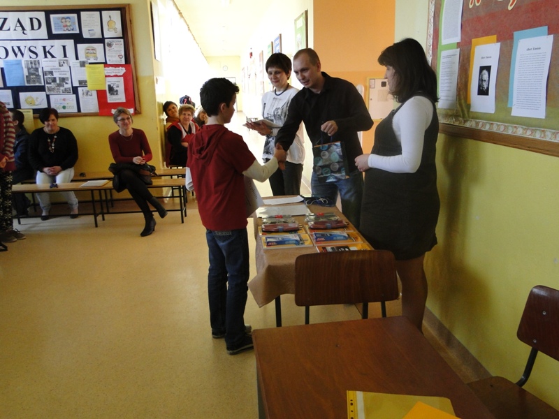 Pani Dyrektor Dorota Dobosz wręczyła laureatom dyplomy, a Pan Artur Boryczka nagrody rzeczowe ufundowane przez Radę Rodziców oraz książki przekazane przez Gdańskie Wydawnictwo Oświatowe.