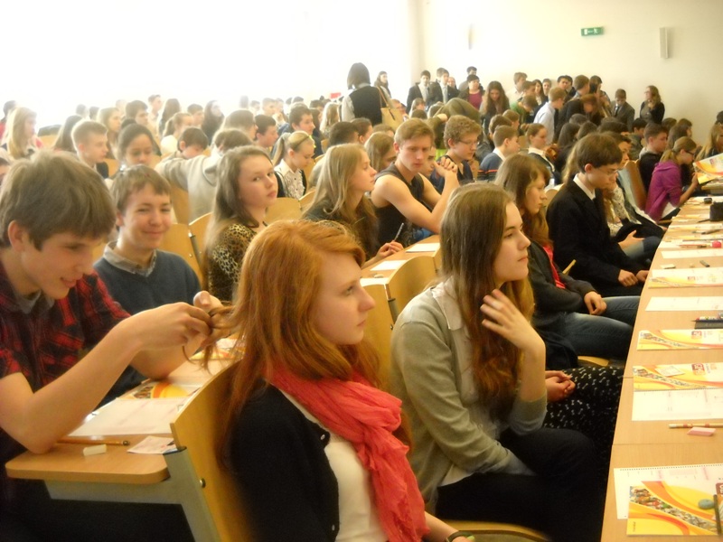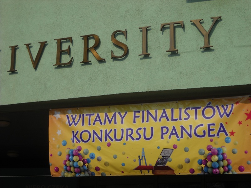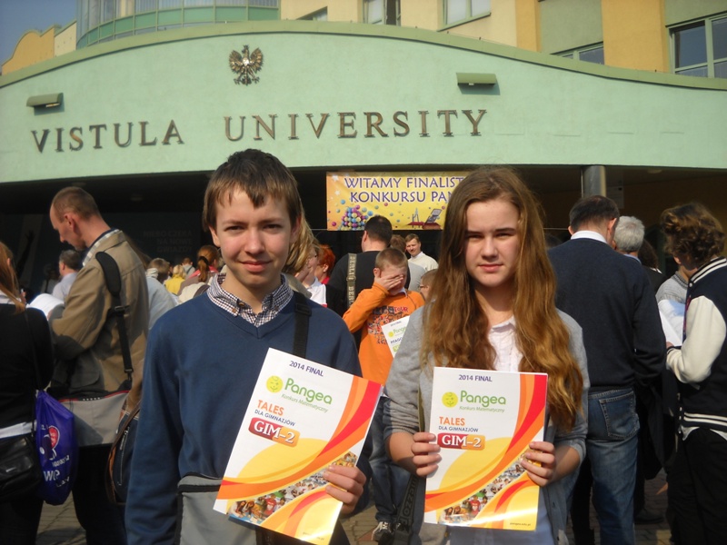 28 marca br. dwoje uczniów naszego gimnazjum: Karolina Prygiel i Tymon Cichowlas brało udział w finale Międzynarodowego Konkursu Matematycznego PANGEA. Konkurs odbywał się w budynku Uniwersytetu Vistula w Warszawie. Zgromadziło się tam ok. 3000 uczniów szkół podstawowych i gimnazjów z całej Polski. Uczestników konkursu rozmieszczono w dużych aulach uniwersytetu, gdzie rozwiązywali testy – każdy w swojej kategorii wiekowej. Konkurs trwał 90 min. Zadania okazały się bardzo trudne. Była to zgodna opinia uczniów wychodzących z sali. Szanse na znalezienie się wśród dwudziestki nagrodzonych (20 na 500 uczniów w każdej kategorii) są niewielkie, ale sam pobyt na uczelni i udział w konkursie dostarczyły naszym finalistom wielu pozytywnych wrażeń.